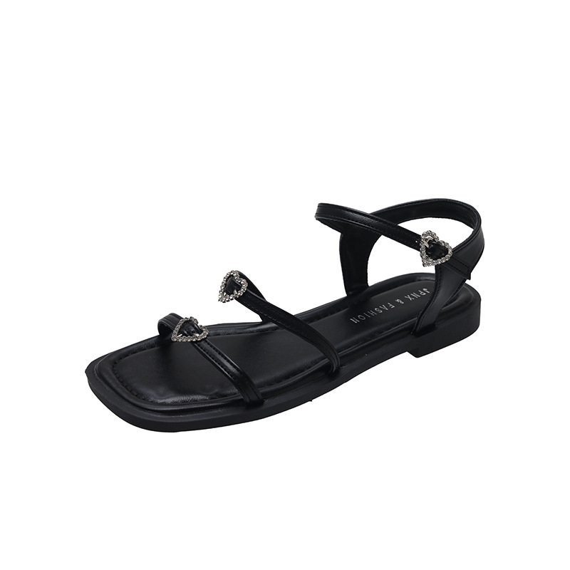 2025 여름 새 스타일 플랫 패셔너블 러브 버클 샌들 여성 한국 스타일 여성 신발 비치 스커트