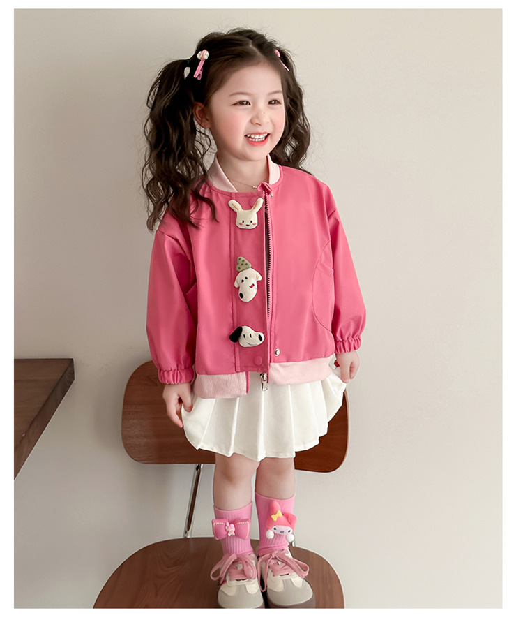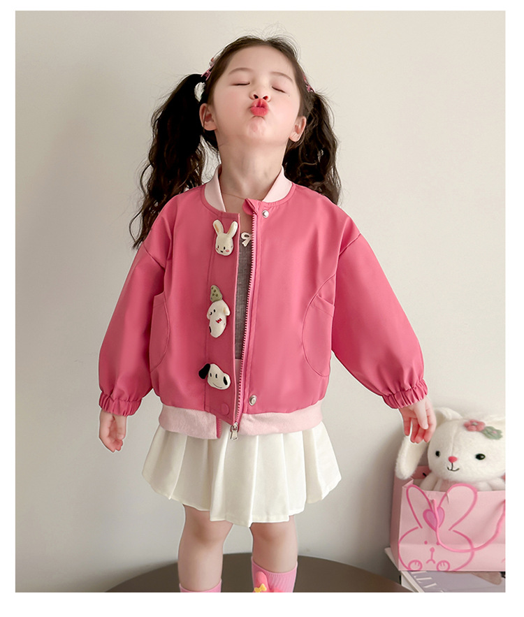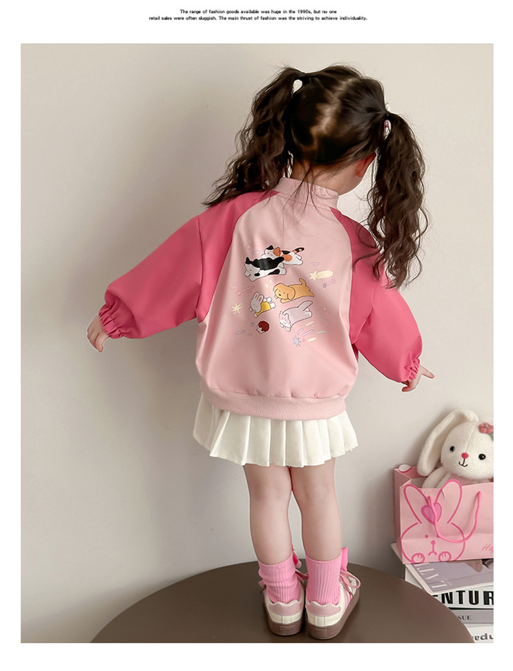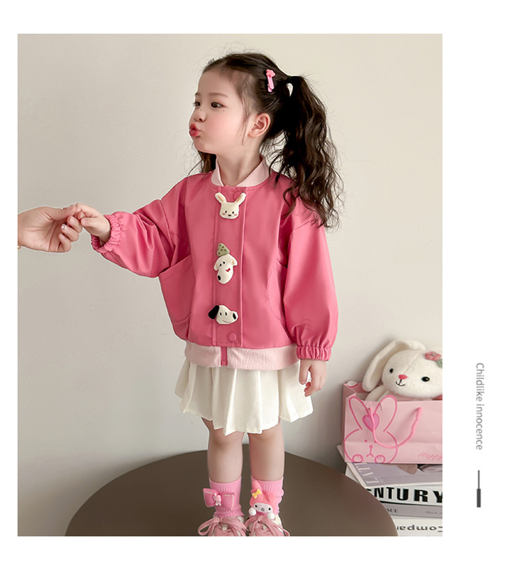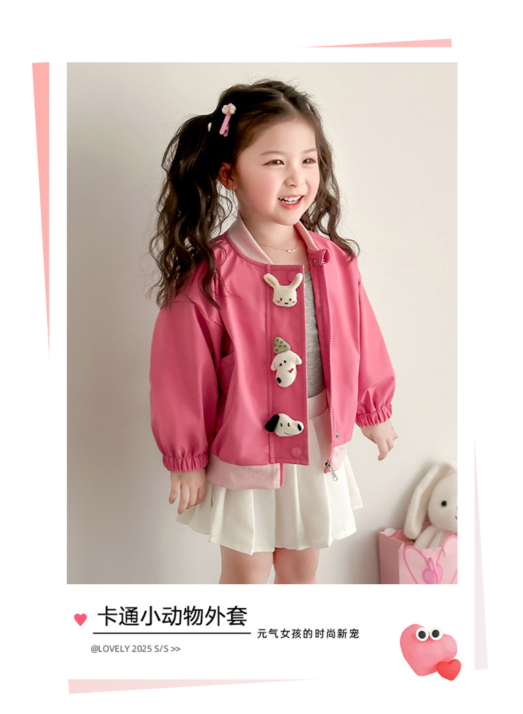 아기 소녀 코트 2025 새로운 작은 소녀 사이버 축하 만화 작은 동물 지퍼 셔츠 봄과 가을 재킷 조수