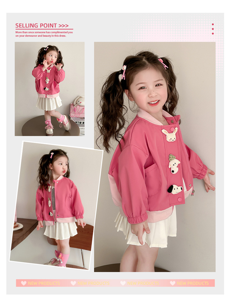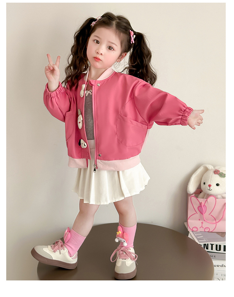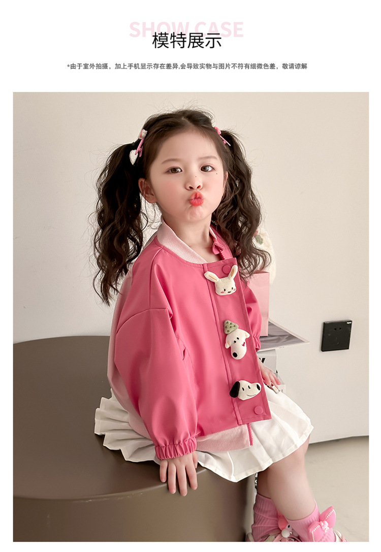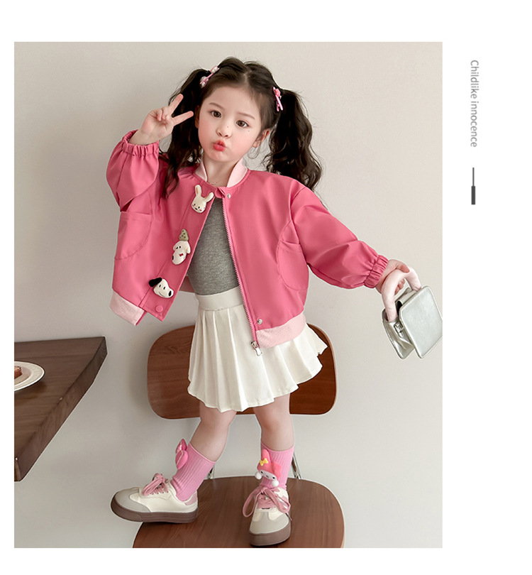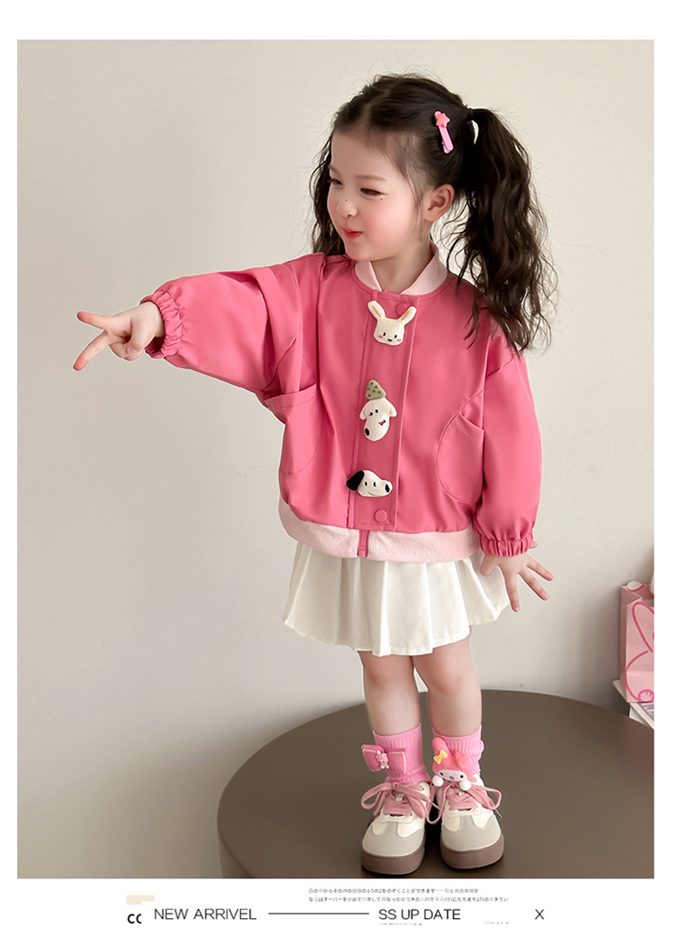 아기 소녀 코트 2025 새로운 작은 소녀 사이버 축하 만화 작은 동물 지퍼 셔츠 봄과 가을 재킷 조수