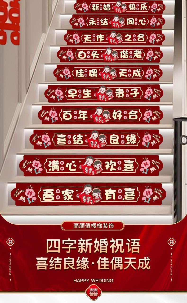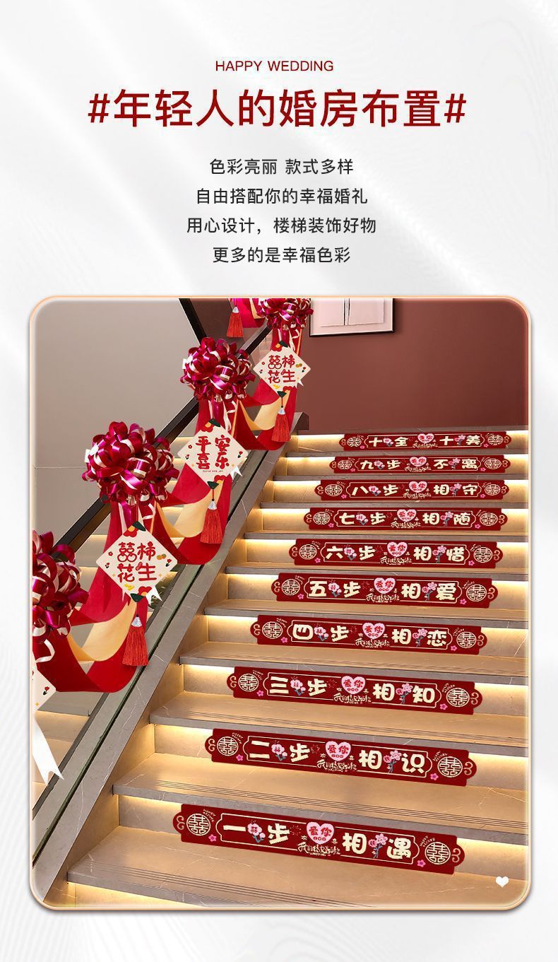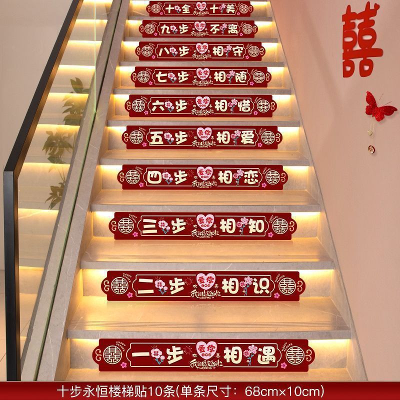웨딩 계단 단계 스티커 웨딩 룸 장식 웨딩 남자의 새 집 난간 단계 스티커 배열 웨딩 웨딩 워드 스티커스토어 가기