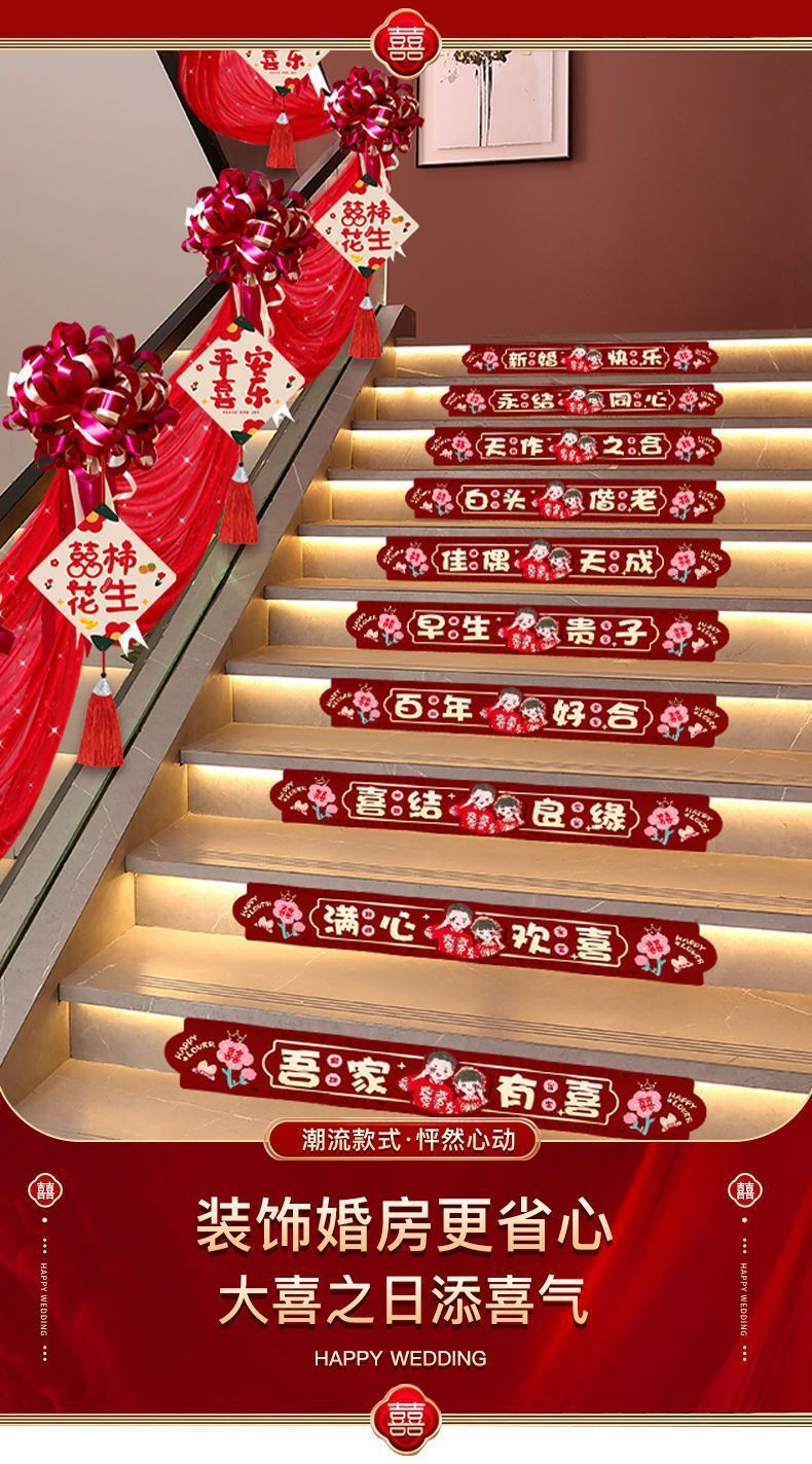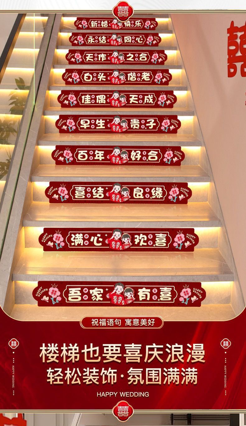 웨딩 계단 단계 스티커 웨딩 룸 장식 웨딩 남자의 새 집 난간 단계 스티커 배열 웨딩 웨딩 워드 스티커