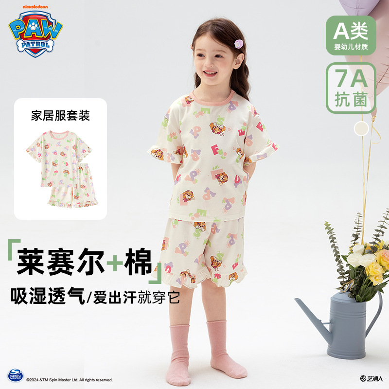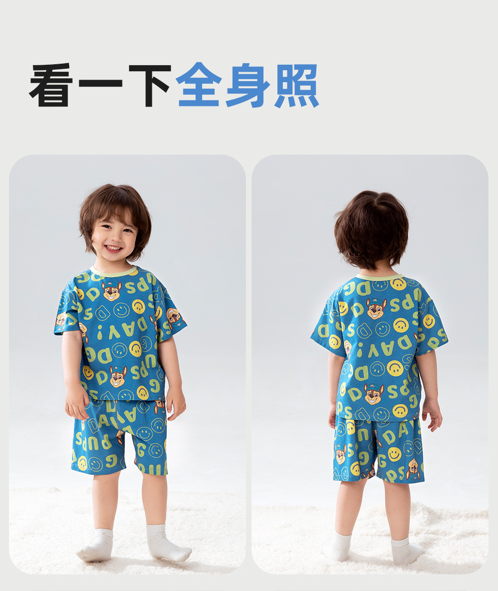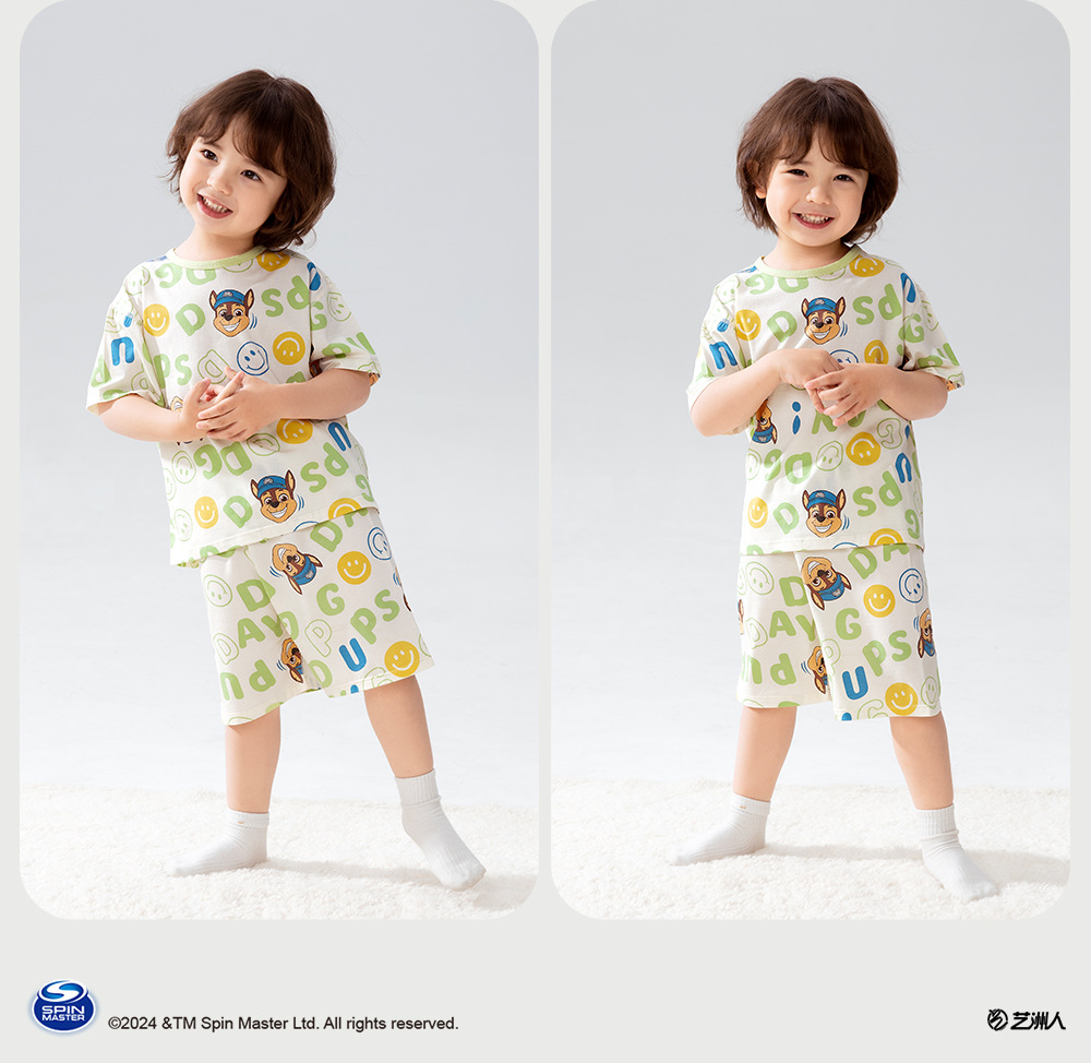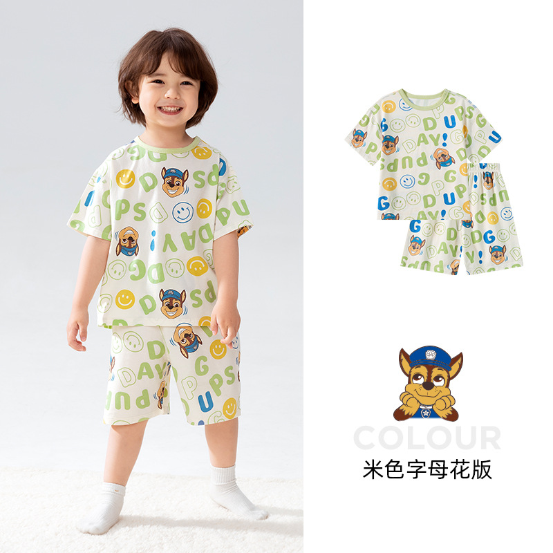 Paw Patrol 소년 잠옷 반팔 반바지 어린이 여름 얇은 7부 소매 가정 의류 세트 아기 에어컨 옷스토어 가기