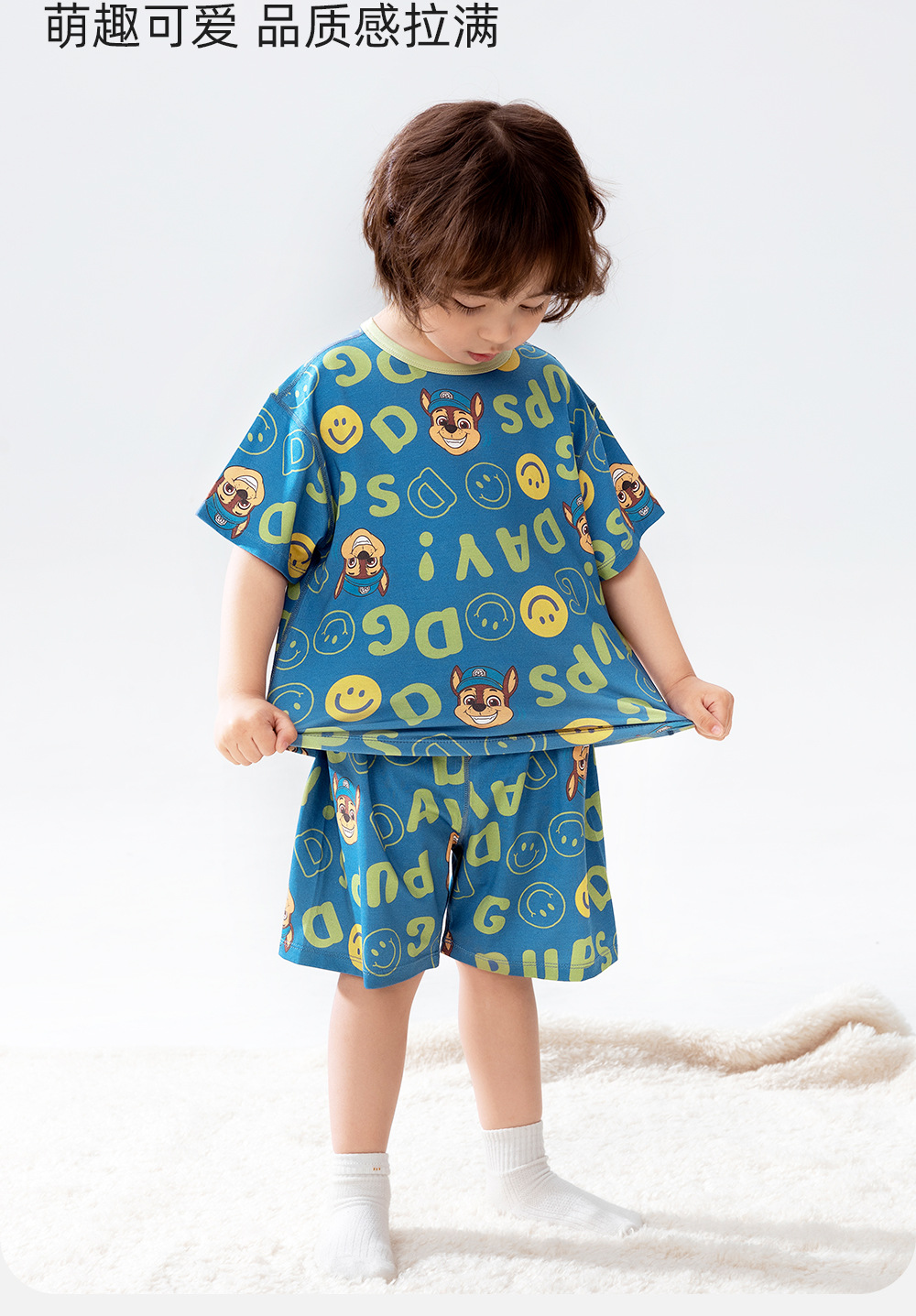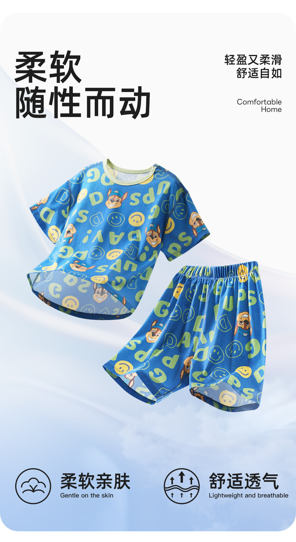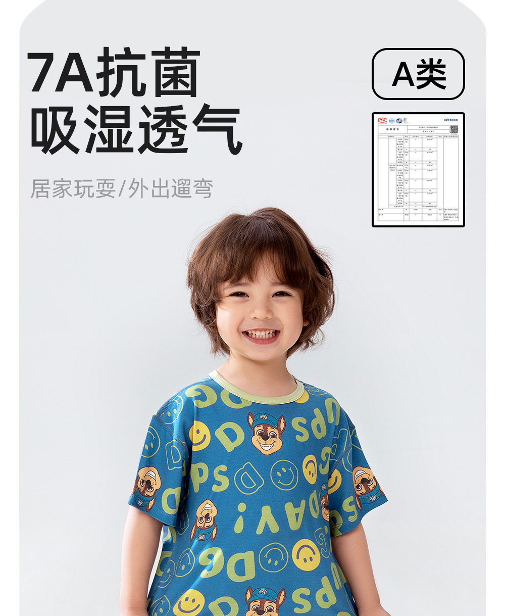 Paw Patrol 소년 잠옷 반팔 반바지 어린이 여름 얇은 7부 소매 가정 의류 세트 아기 에어컨 옷스토어 가기