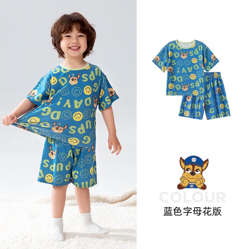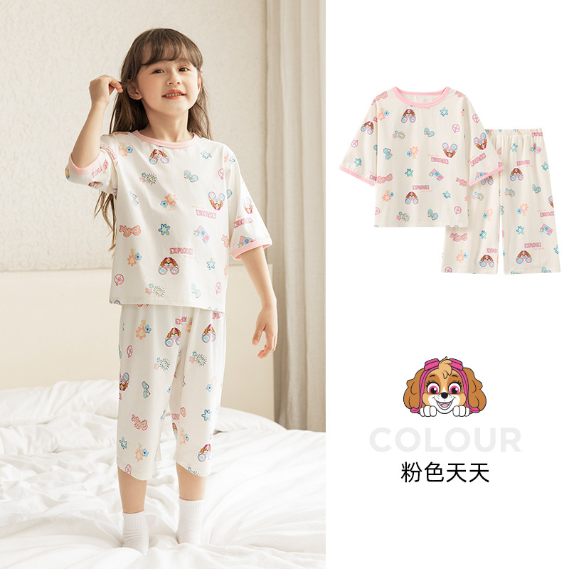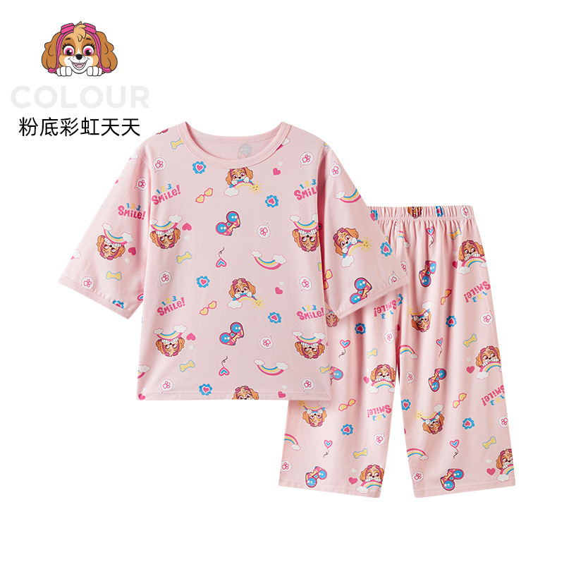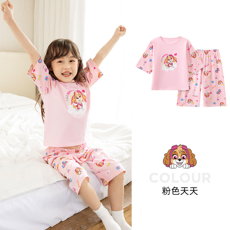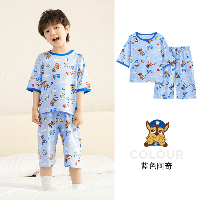 Paw Patrol 소년 잠옷 반팔 반바지 어린이 여름 얇은 7부 소매 가정 의류 세트 아기 에어컨 옷