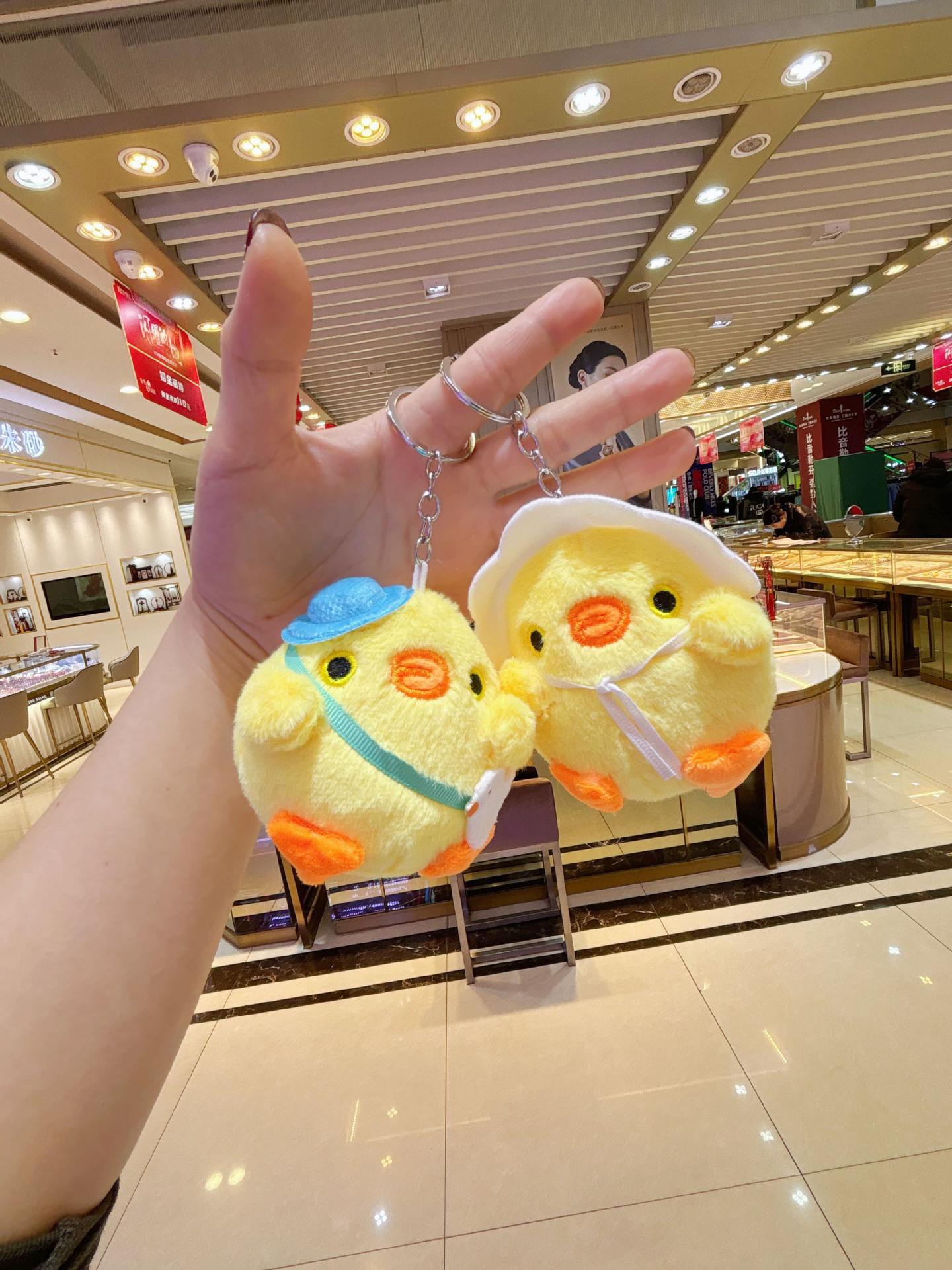 귀여운 커플 병아리 펜던트 봉제 장난감 인형 작은 노란색 오리 인형 백팩 펜던트 키 체인 인형스토어 가기