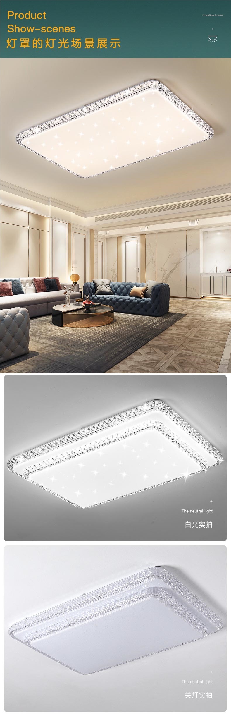 • 90X60cm 더블 레이어 [크리스탈 다이아몬드 갓 + 섀시
