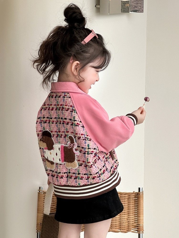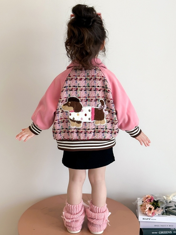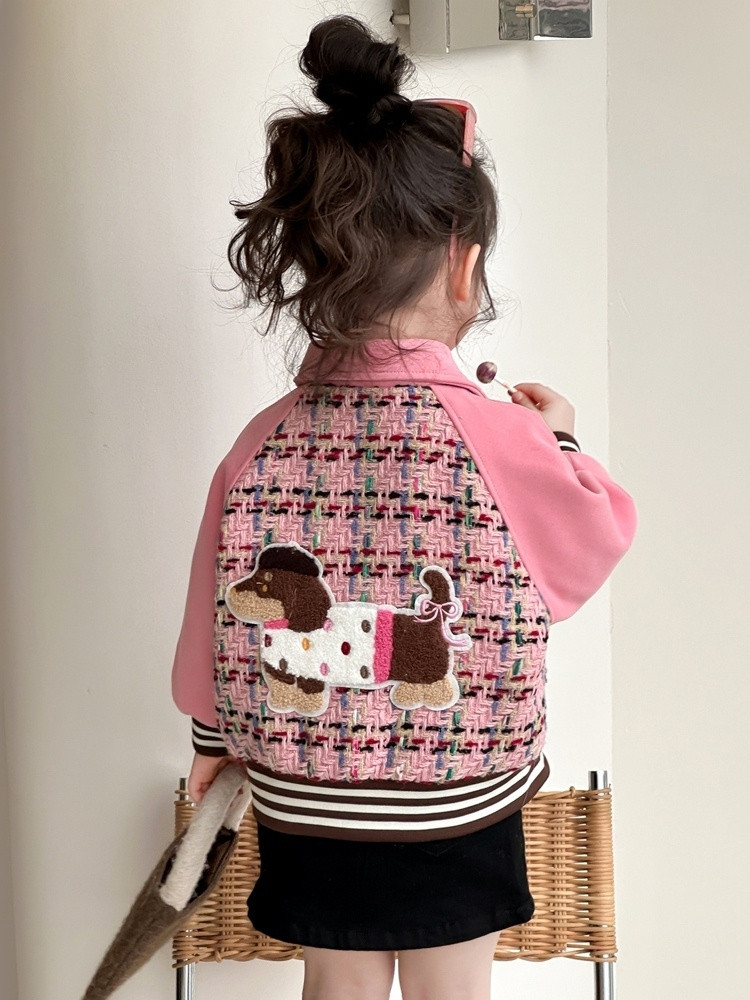 여자 샤넬 스타일 야구 세트 코트 2025 봄 새로운 점박이 닥스 훈트 개 코트 귀여운 패션 재킷 코트