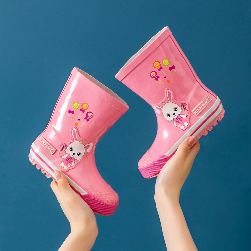 깨진 크기 통관 초등학생을위한 어린이 고무 미끄럼 방지 장화 여학생 용 중관 장화 보이스 워터 부츠 외주 신발