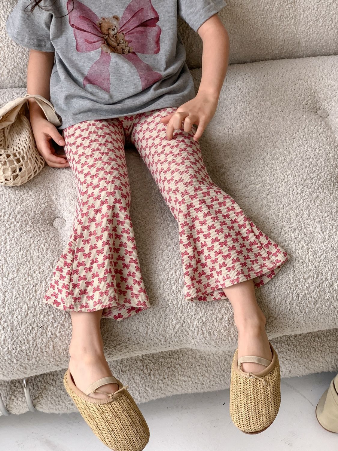 어린이 외국 스타일 세트 2024 여름 새 소녀 아기 짧은 소매 프린트 티셔츠 트럼펫 바지 투피스