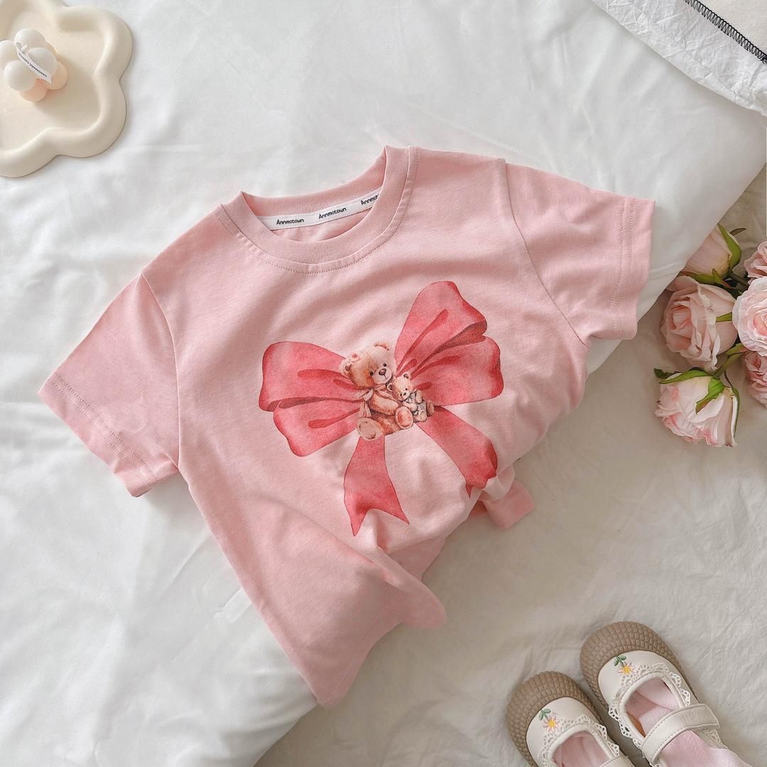 어린이 외국 스타일 세트 2024 여름 새 소녀 아기 짧은 소매 프린트 티셔츠 트럼펫 바지 투피스스토어 가기