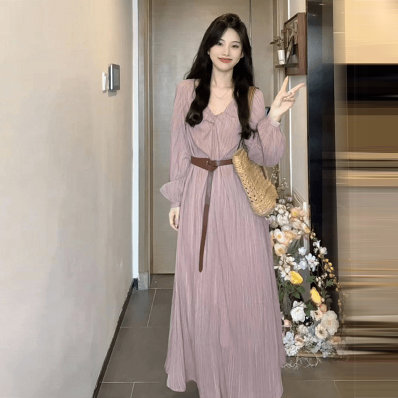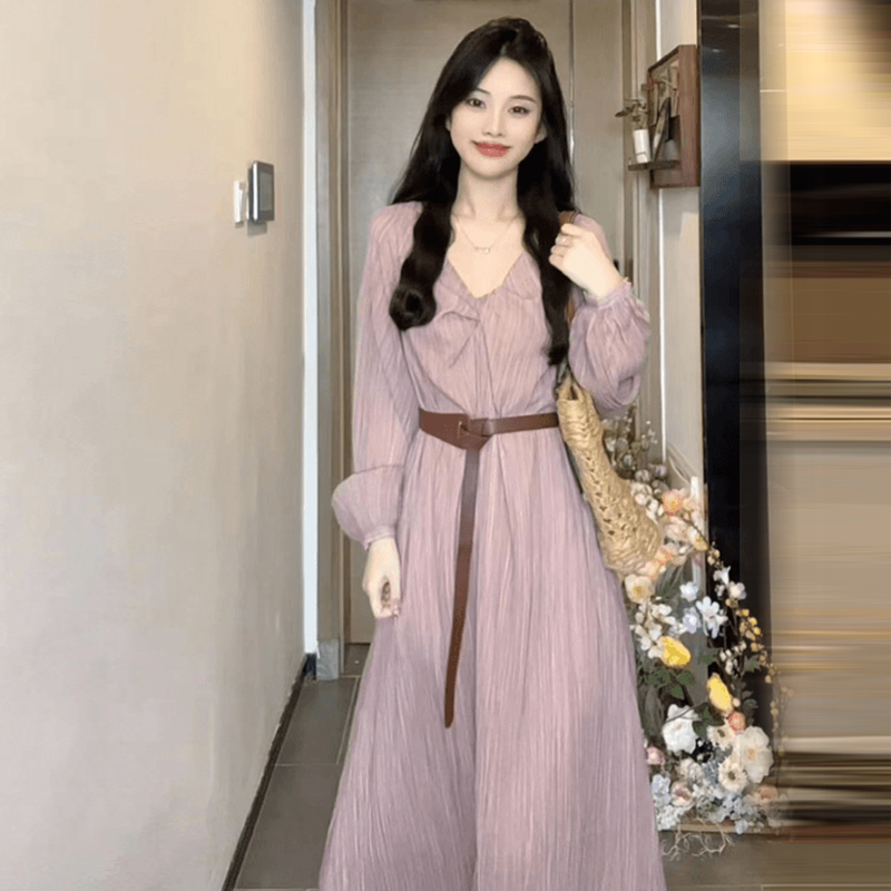 프랑스 부드러운 스타일의 기질 긴 소매 원피스 어린이 봄 2025 새로운 슈퍼 잘 생긴 가을과 겨울 긴 치마