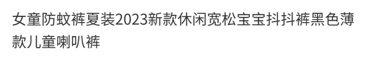 소녀 안티 모기 바지 여름 2023 새로운 캐주얼 느슨한 아기 흔들리는 바지 검은 얇은 어린이 벨 바지