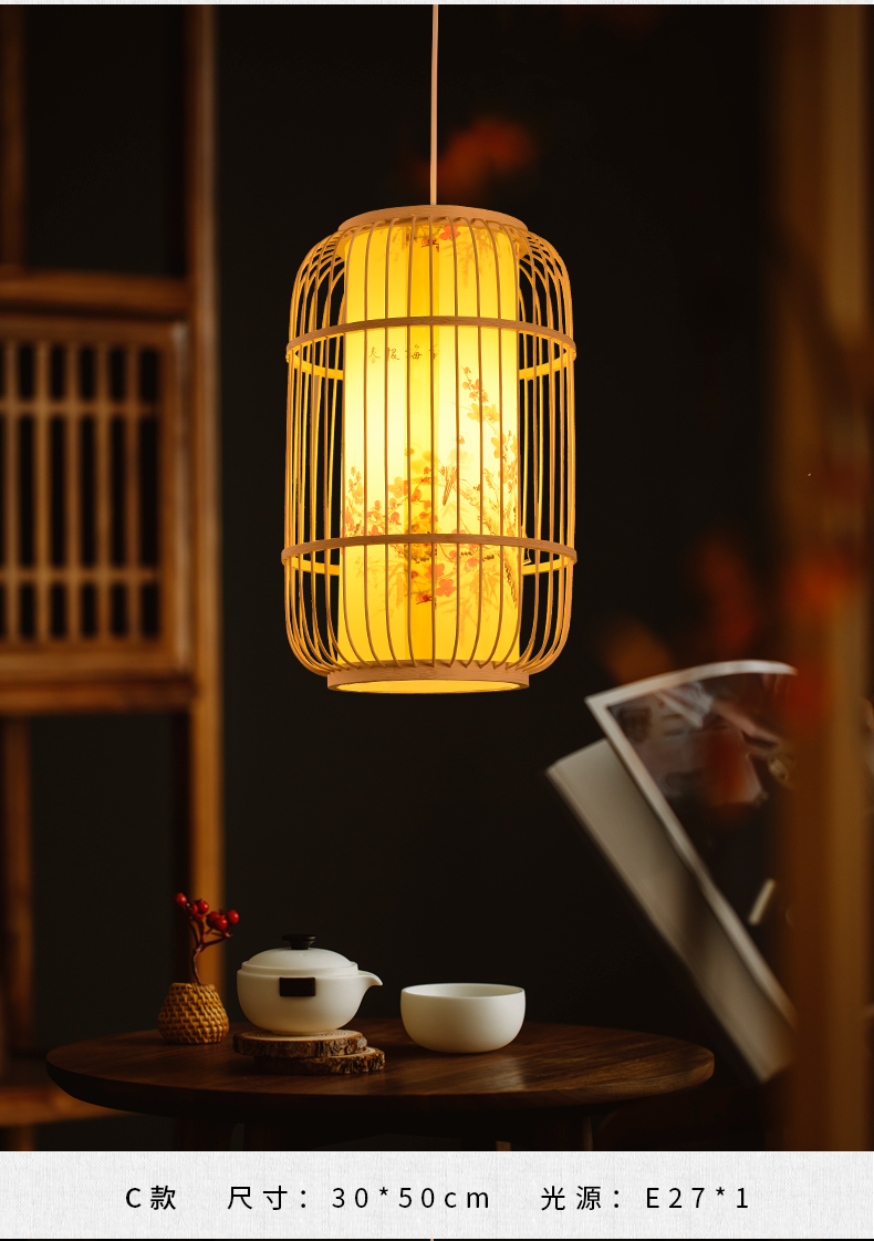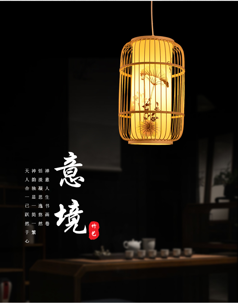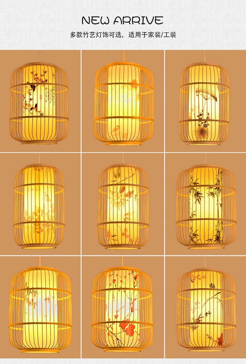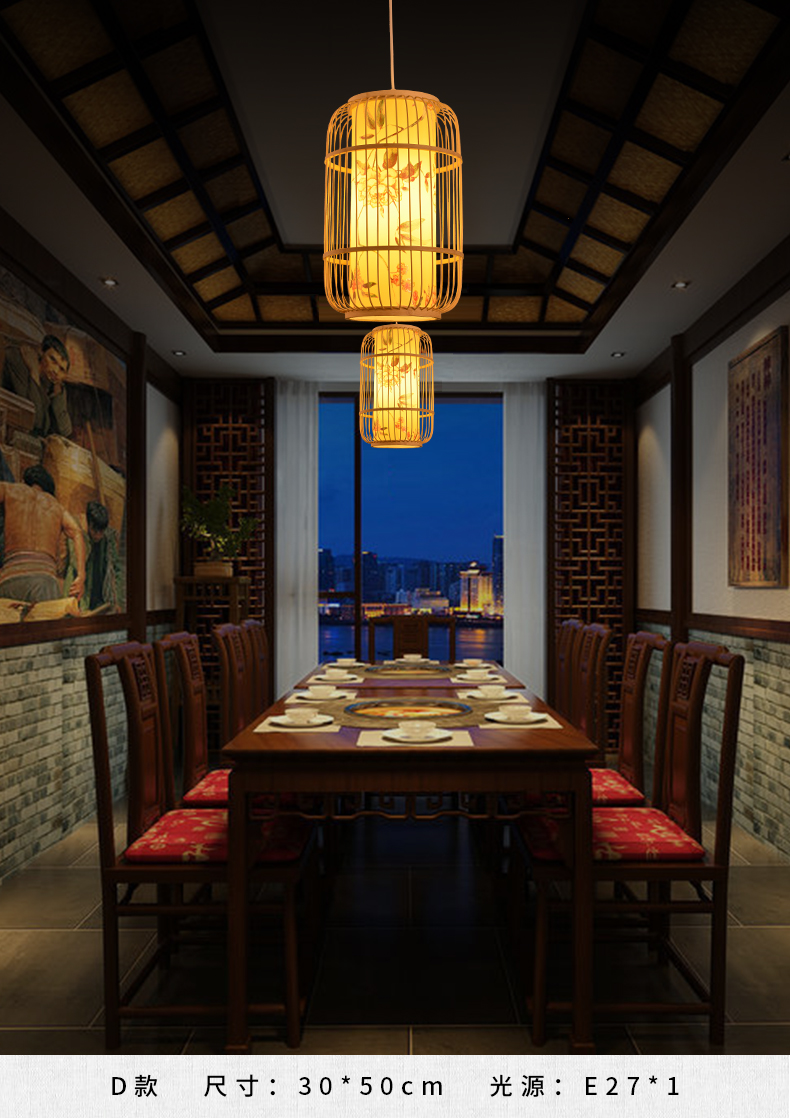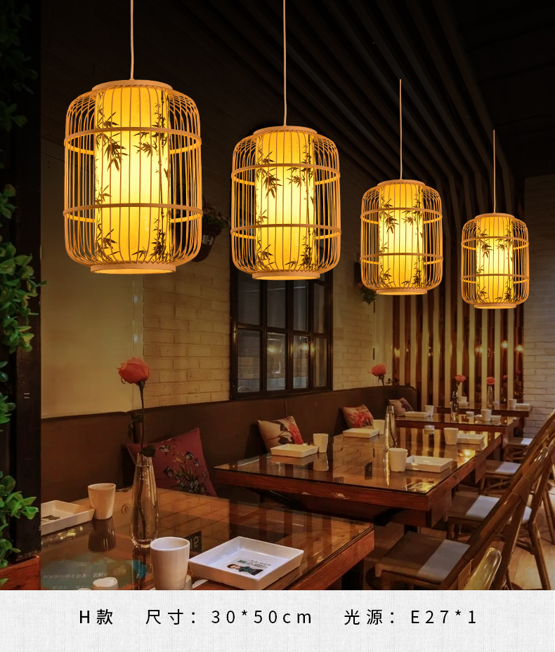 새로운 중국 스타일 레트로 아트 대나무 아트 샹들리에 새장 레스토랑 박스 룸 티 하우스 선 짠 대나무 랜턴스토어 가기