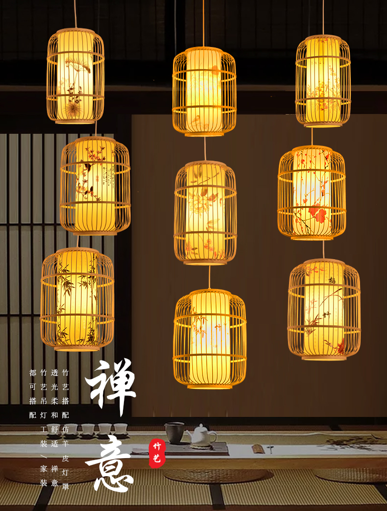 새로운 중국 스타일 레트로 아트 대나무 아트 샹들리에 새장 레스토랑 박스 룸 티 하우스 선 짠 대나무 랜턴