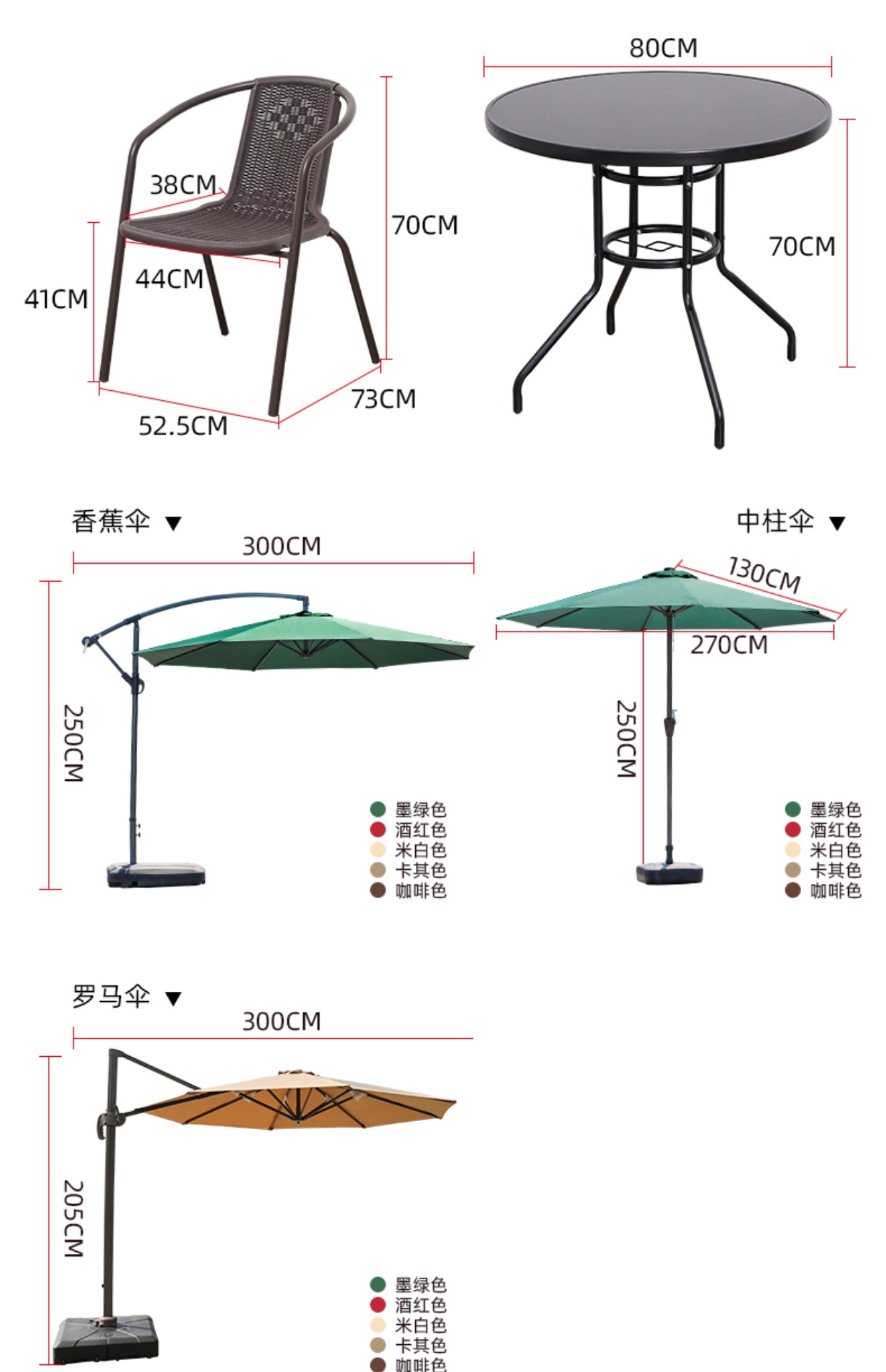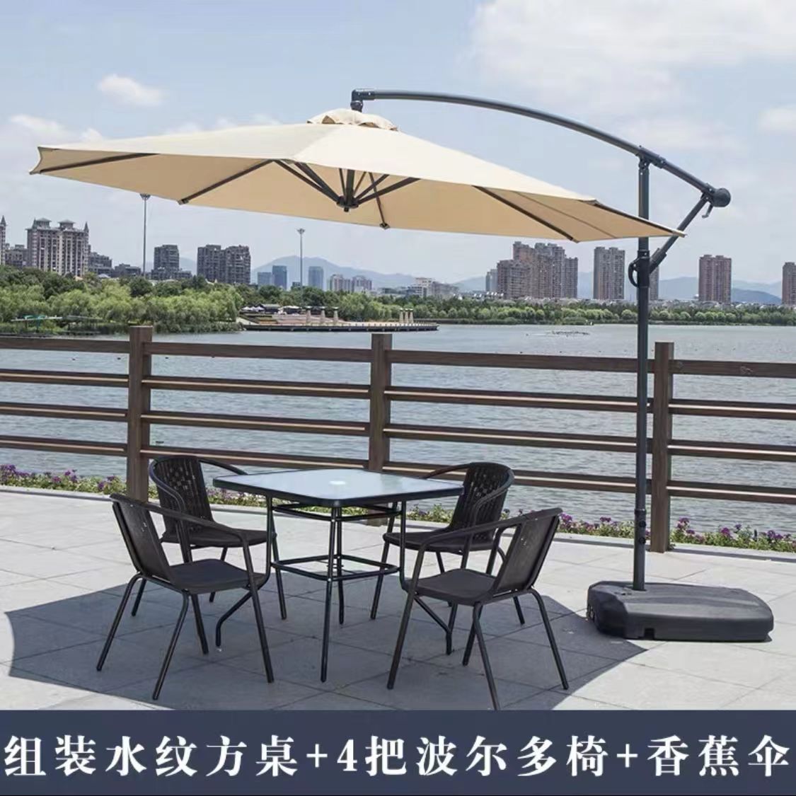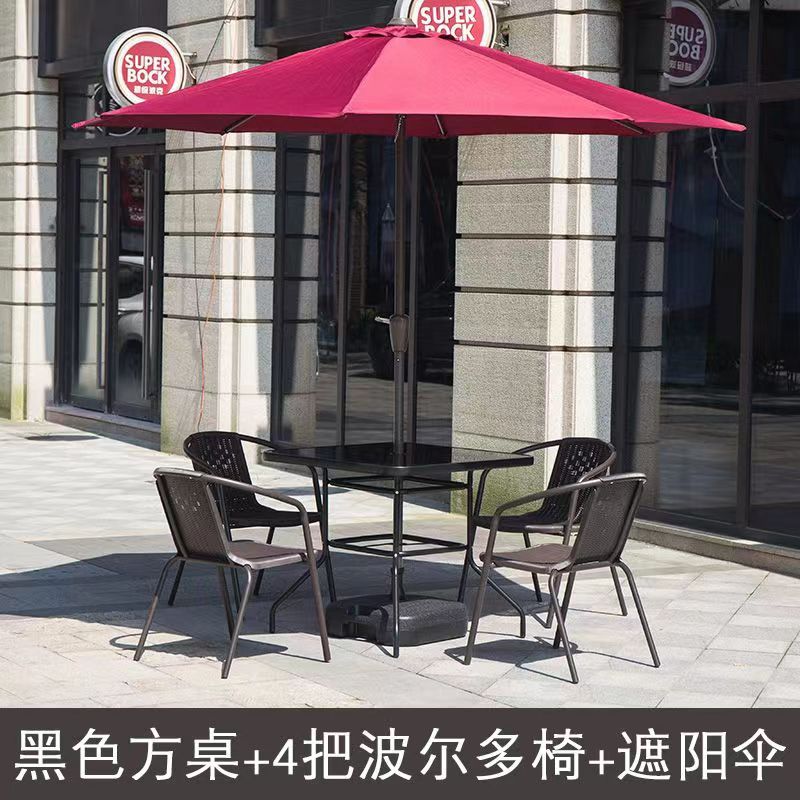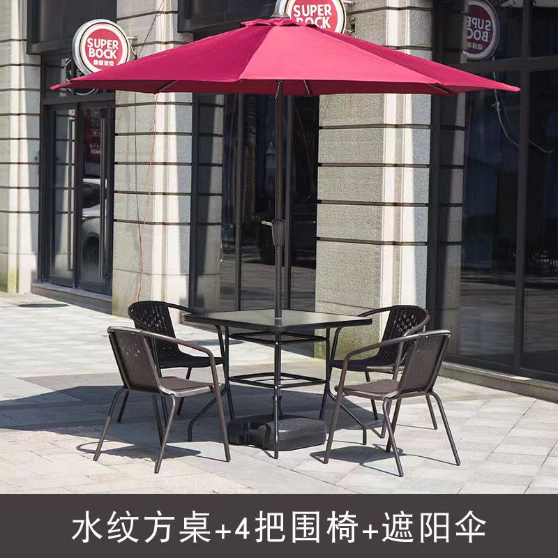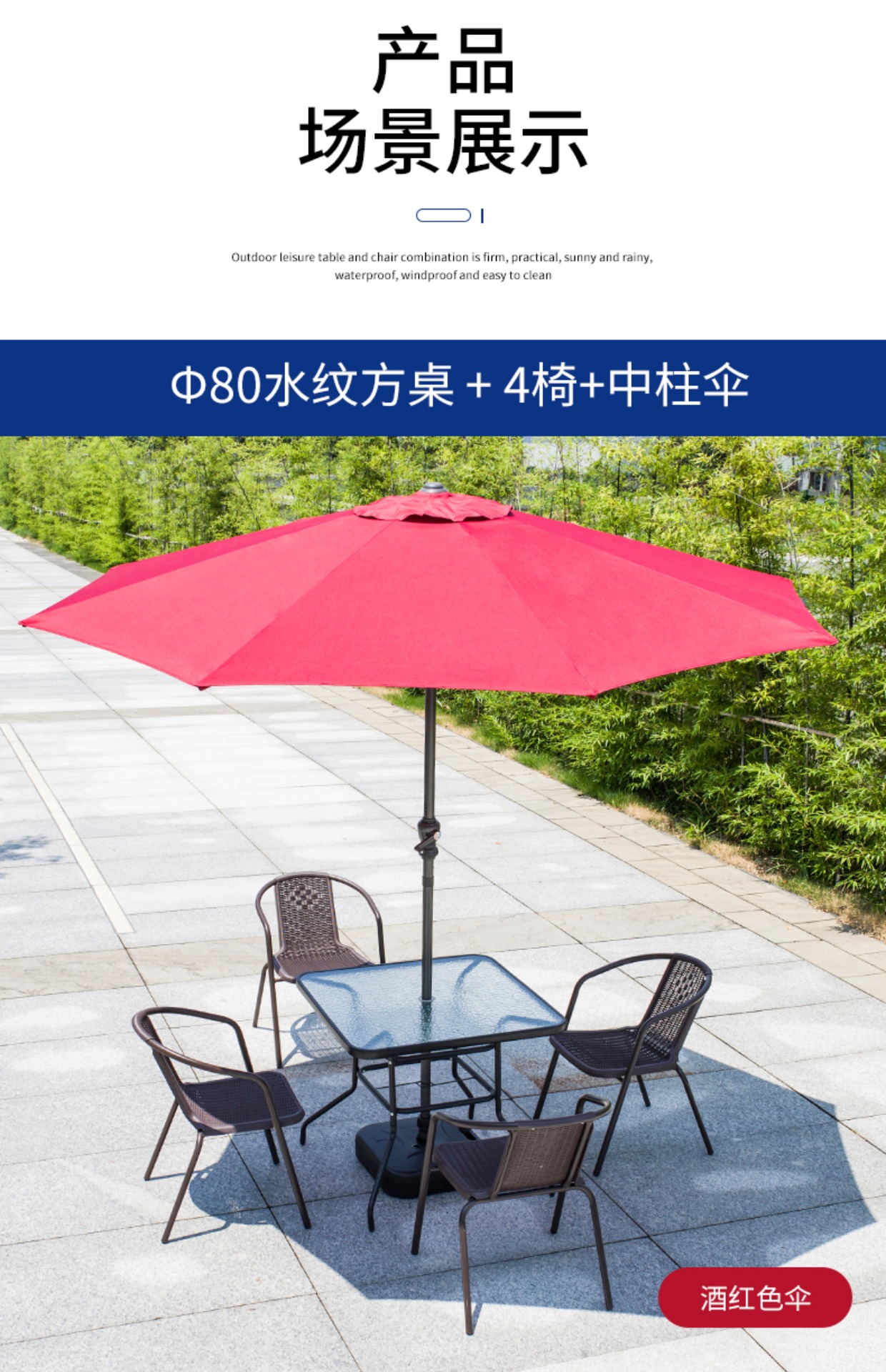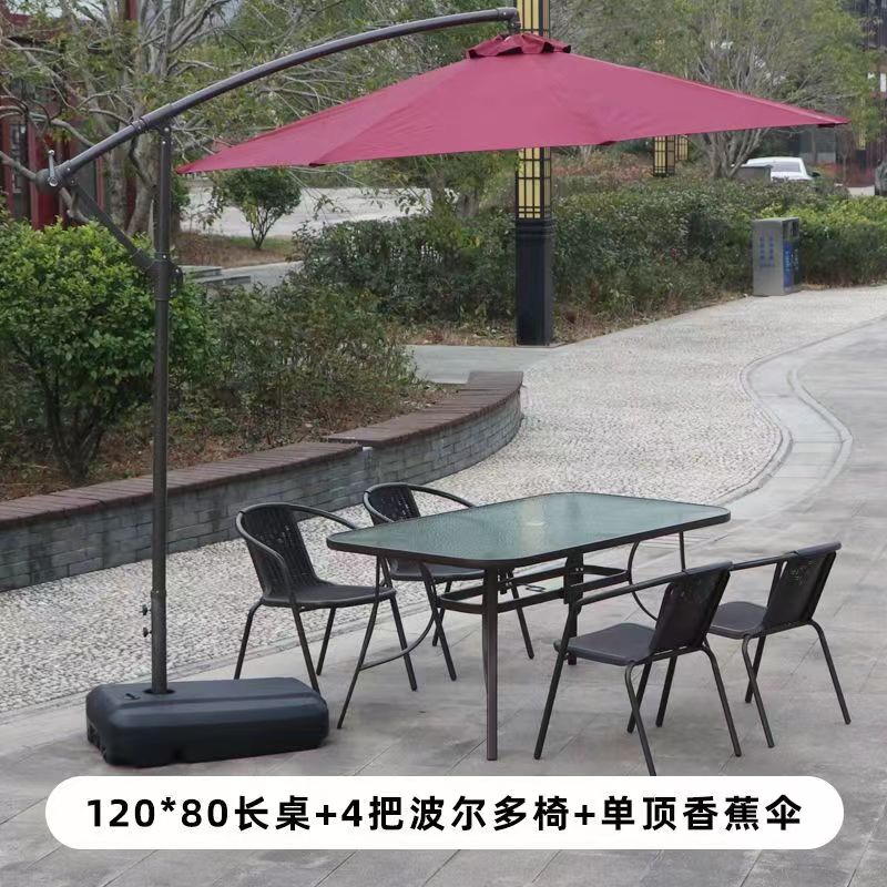 • 120*80 직사각형 테이블 + 의자 4개 + 단일 상단 중앙 기둥 우산