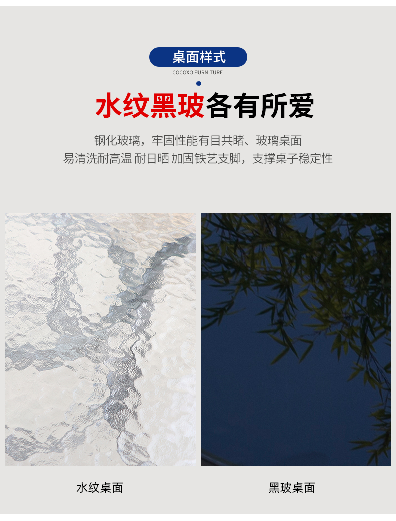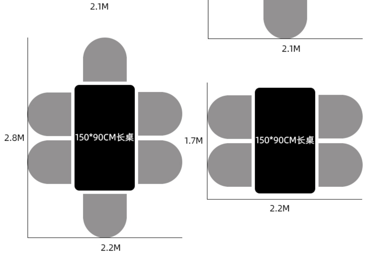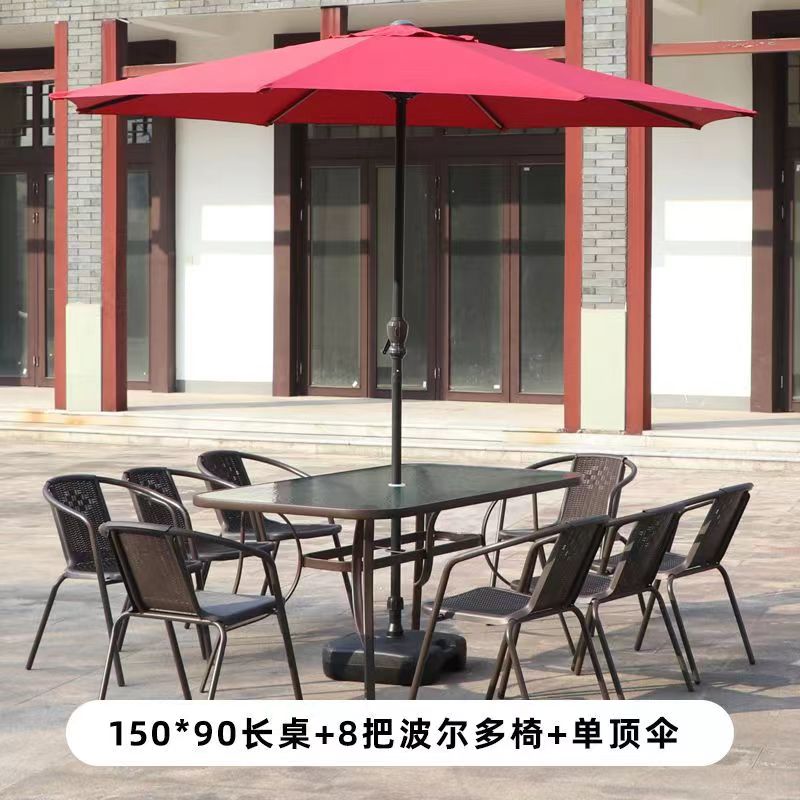 • 150*90 직사각형 테이블 + 의자 8개 + 단일 상단 중앙 기둥 우산
