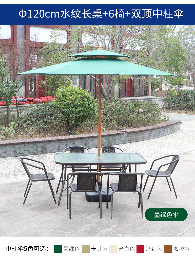 • 120*80 직사각형 테이블 + 의자 6개 + 이중 상단 중앙 기둥 우산