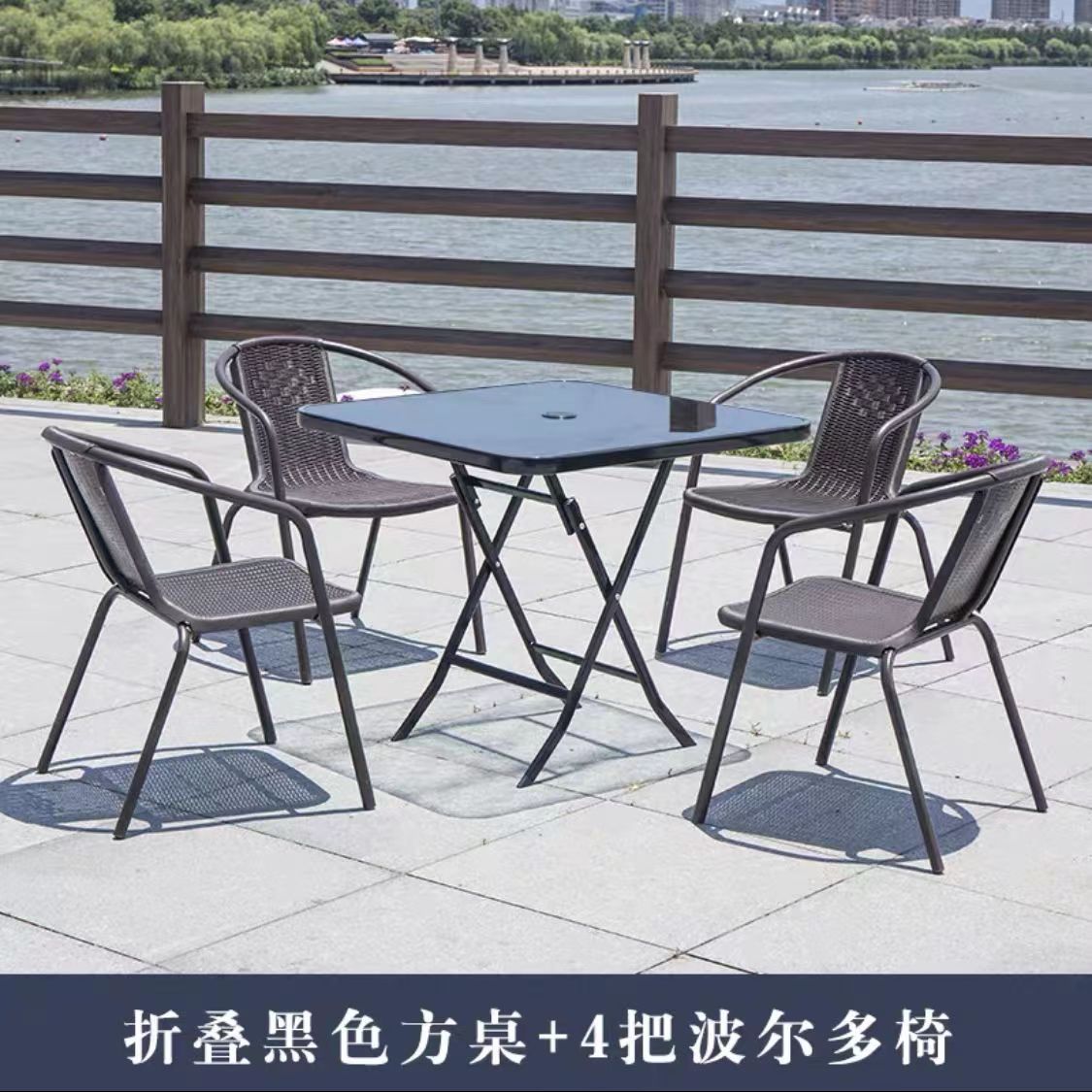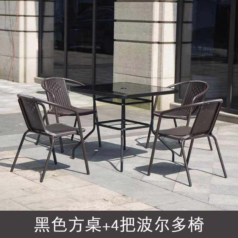 • 80 검정색 조립식 사각 테이블 + 의자 4개 + 단일 상단 중앙 기둥 우산