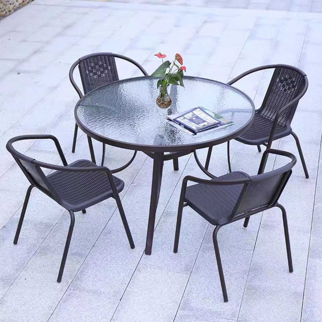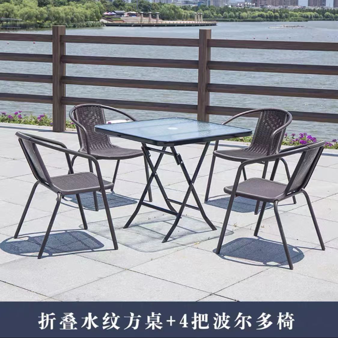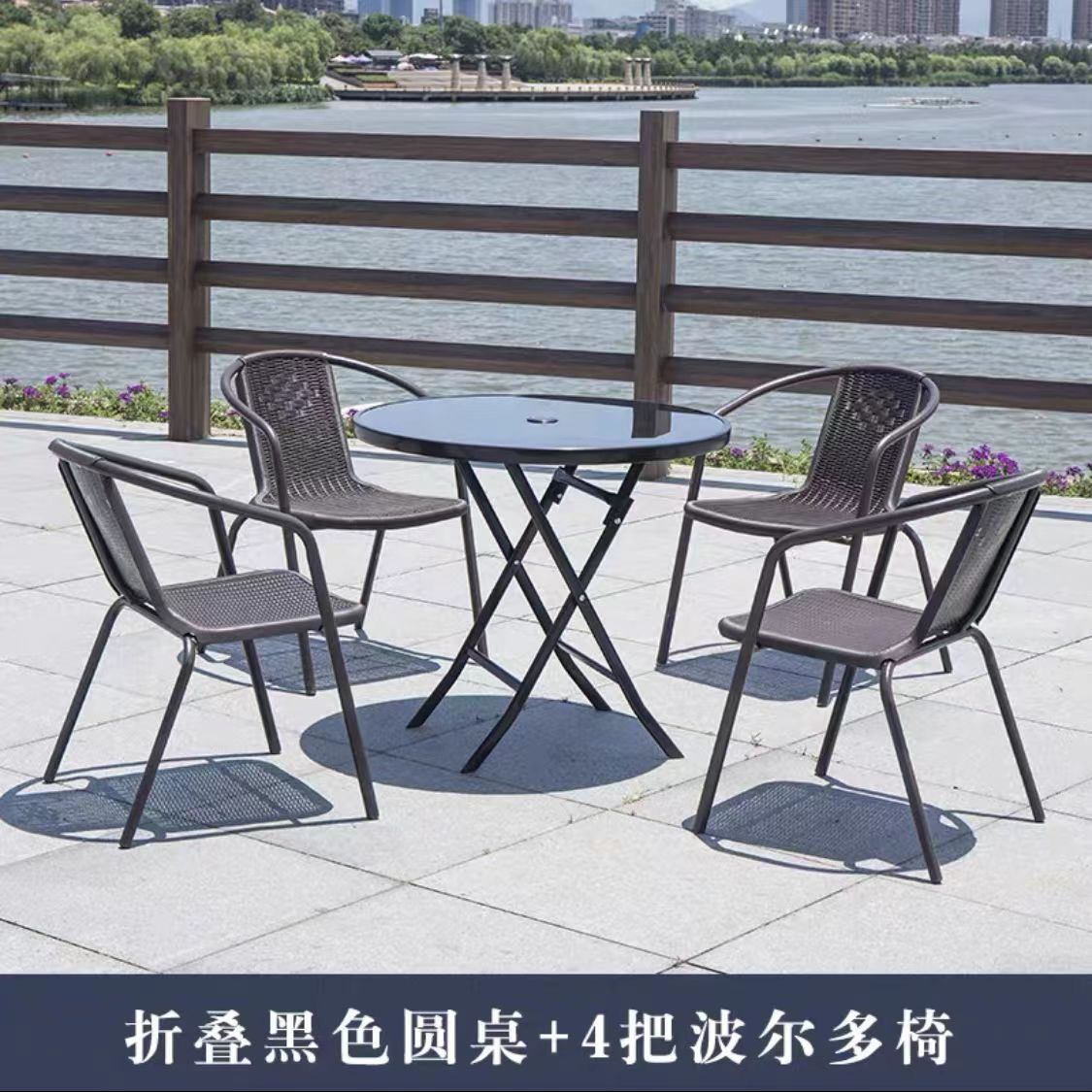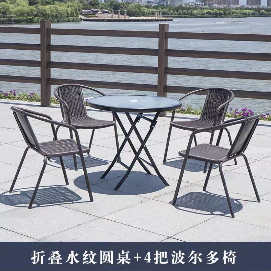 야외 테이블과 의자 우산 등나무 의자 발코니 레저 코트야드 철 커피 테이블 조합 등나무 야외 테라스 3-5 조각 세트스토어 가기