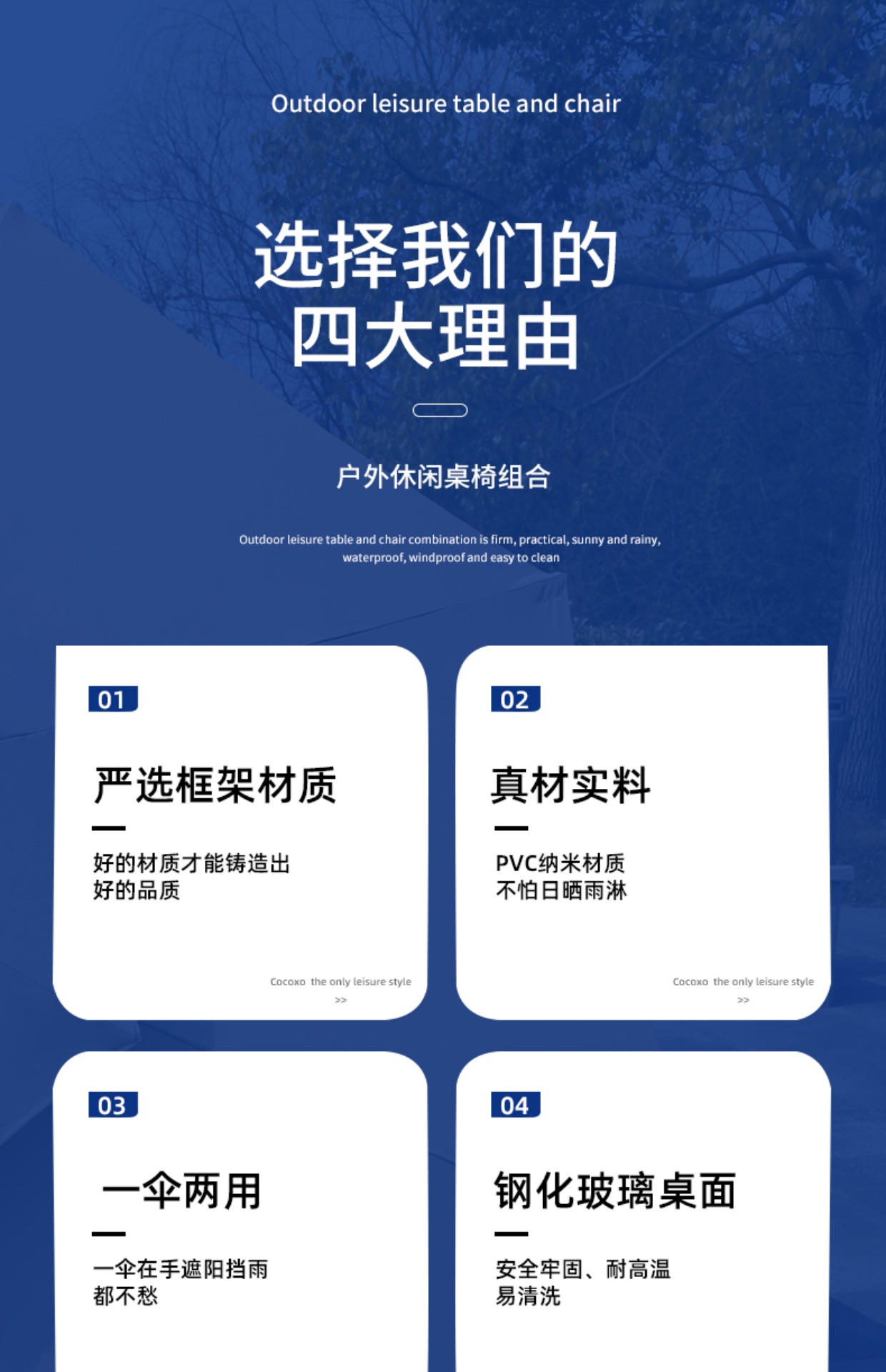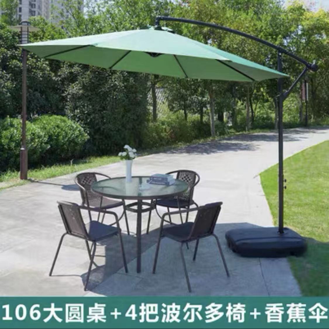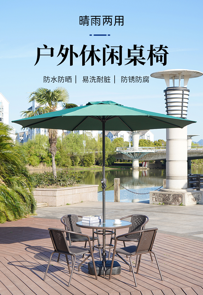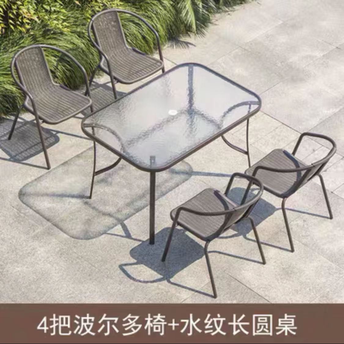 • 150*90 직사각형 테이블 + 의자 4개 + 단일 상단 중앙 기둥 우산