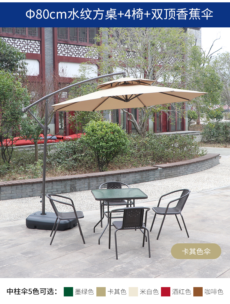 • 120*80 직사각형 테이블 + 의자 4개 + 이중 상단 중앙 기둥 우산