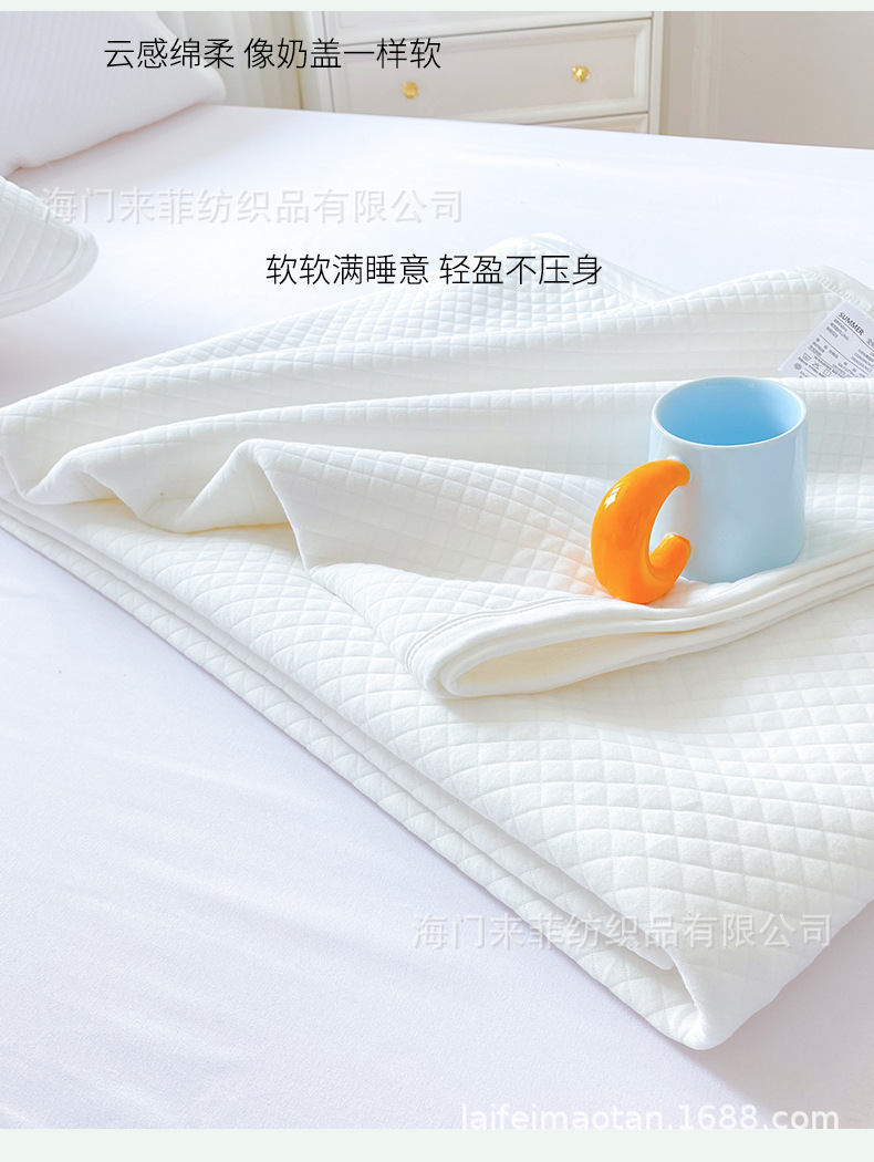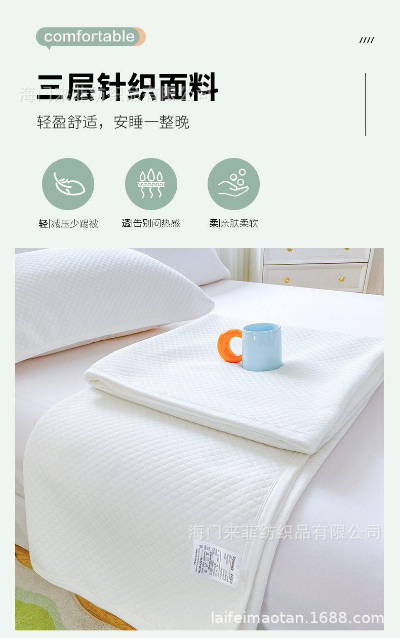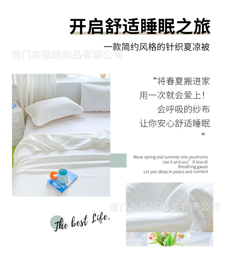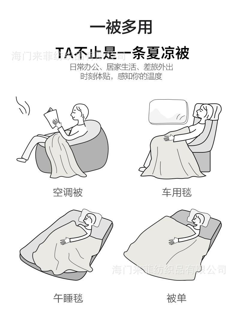 3、空调被,夏天使用方便,透气清凉.当空调温度低的时候盖上。