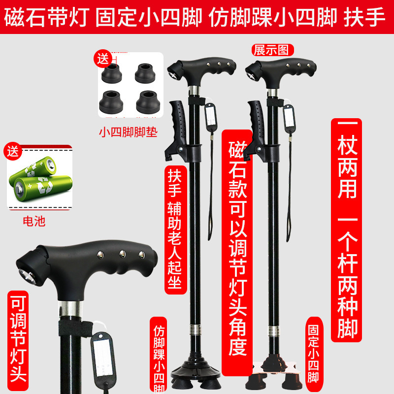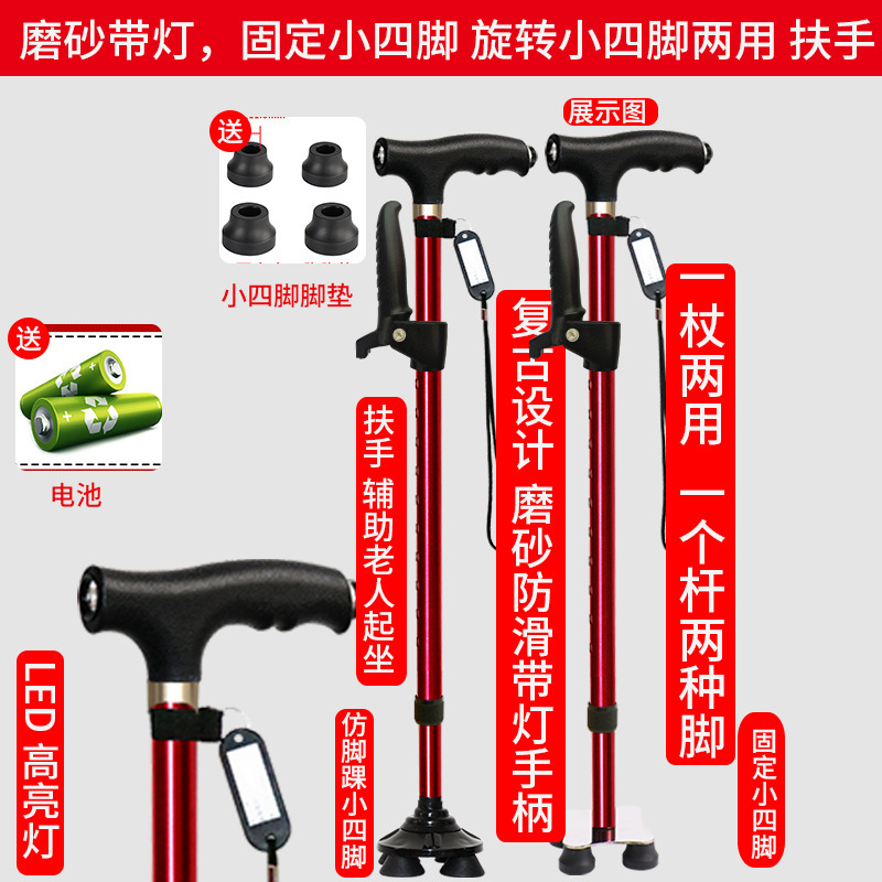 목발 지팡이 네 다리 알루미늄 합금 텔레스코픽 라이트 목발 조명이있는 다기능 목발 용두 조정