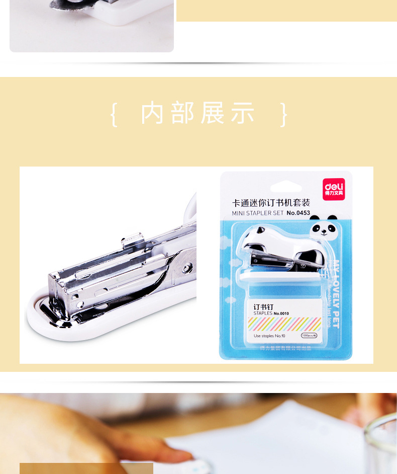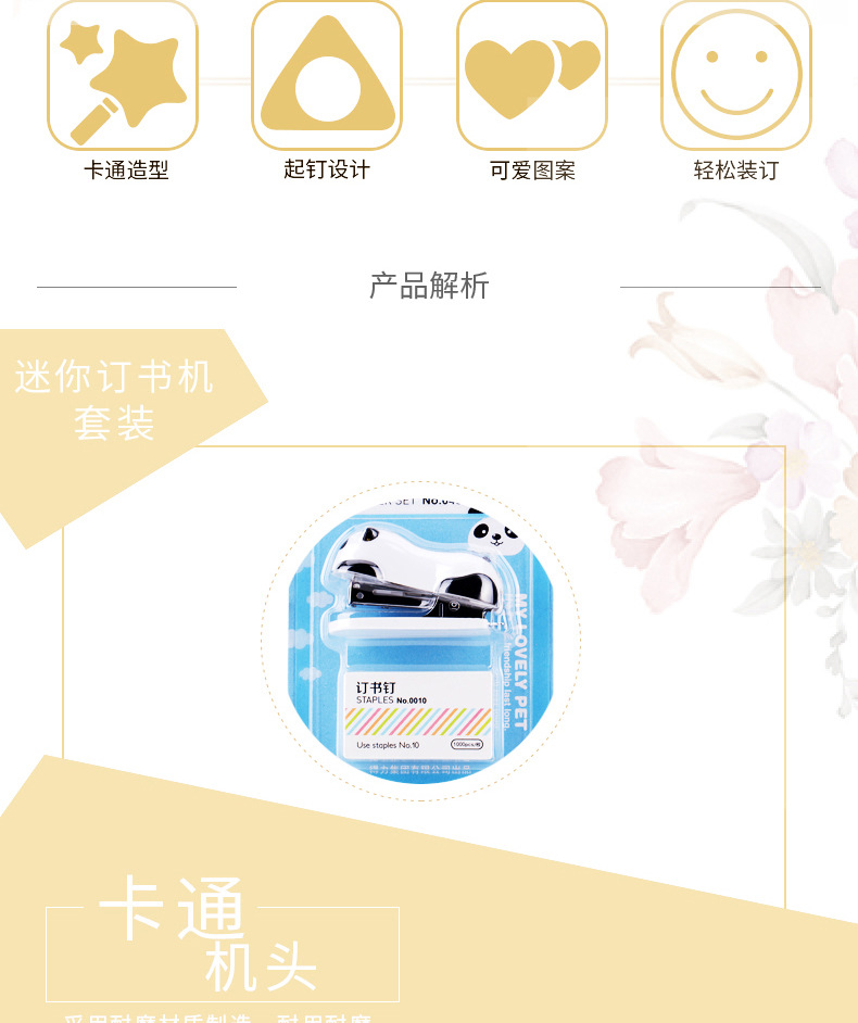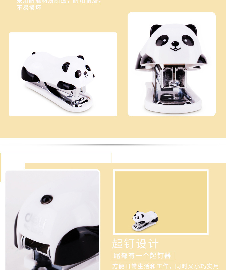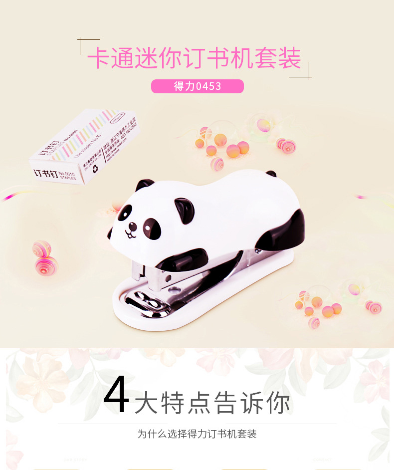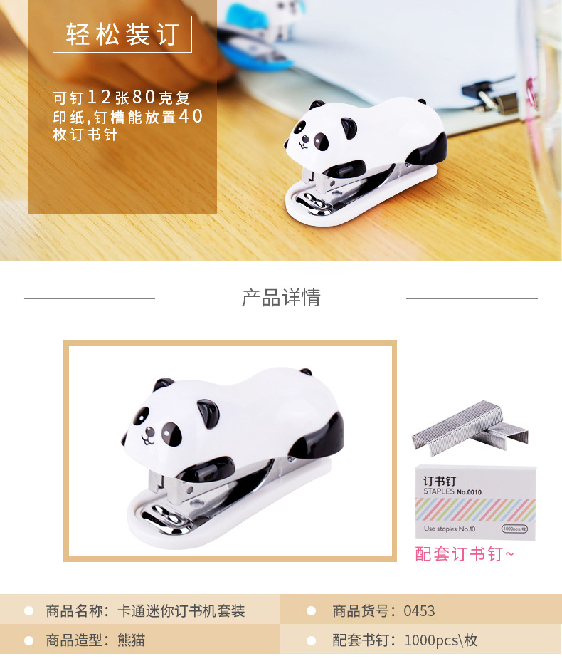 델리 0453 만화 미니 스테이플러 10 세트 팬더 모양 휴대용 작은 스테이플러스토어 가기