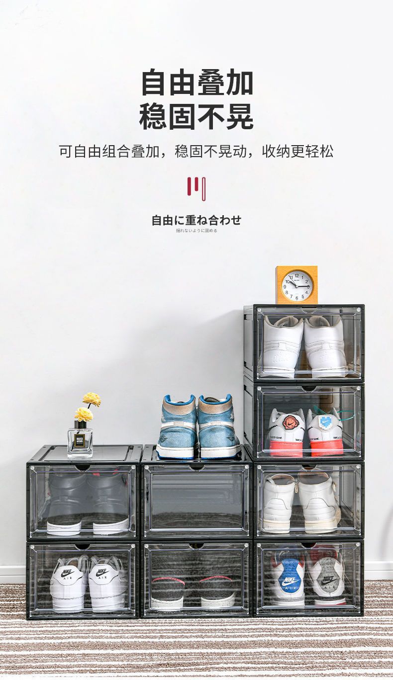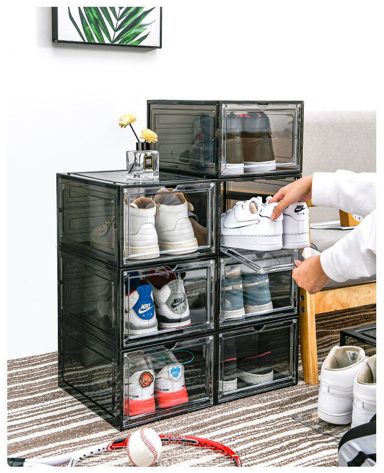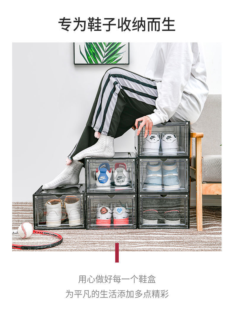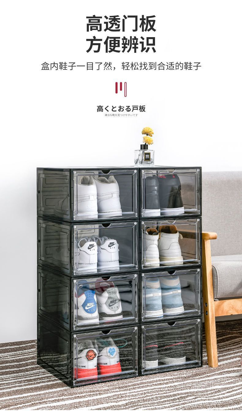 자기 흡입 단단한 플라스틱 투명한 서랍 신발 상자 신발 저장 상자 기숙사 공간 절약 신발 랙 신발 캐비닛 분리스토어 가기