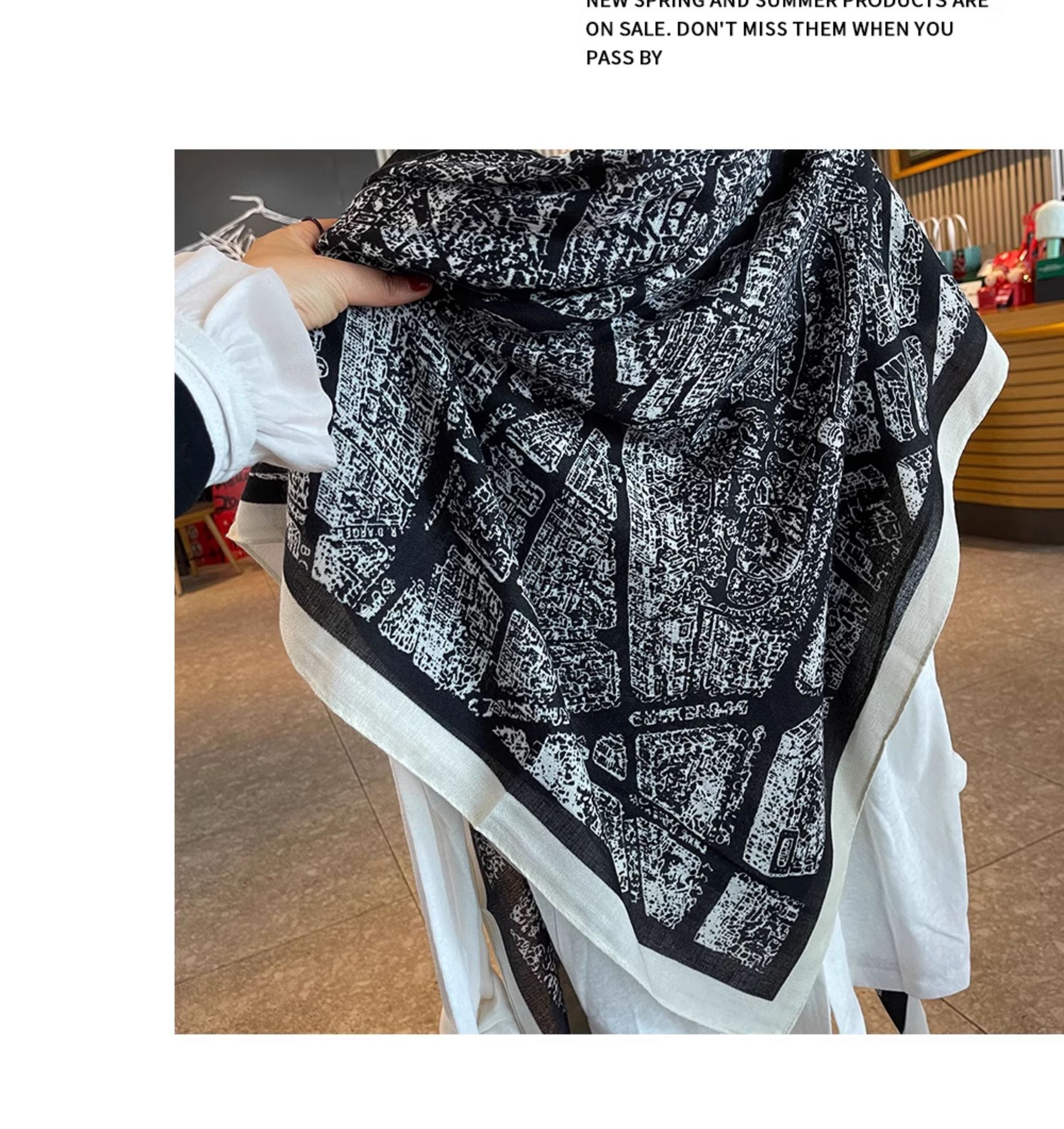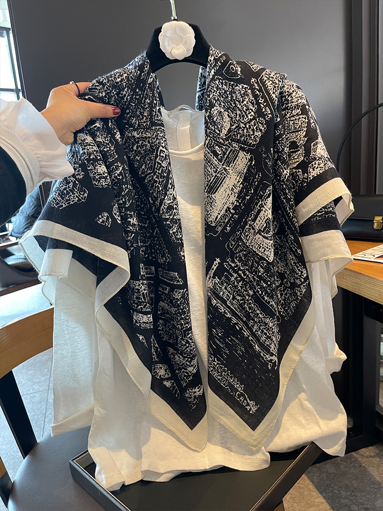 春夏新款百搭大方巾高级感配饰披肩女亚麻手感围巾空调房旅游丝巾