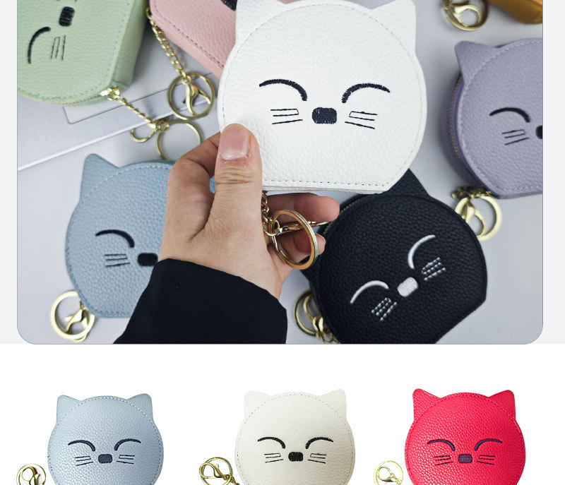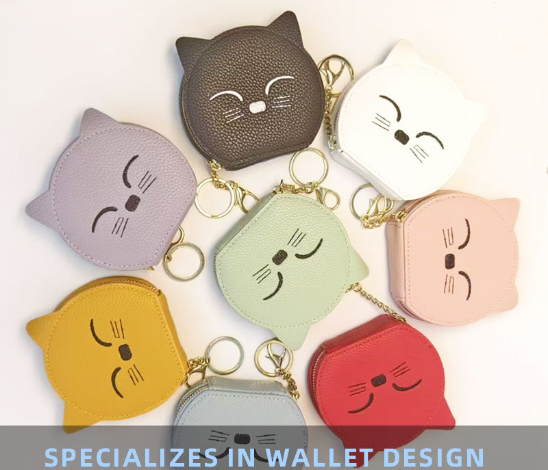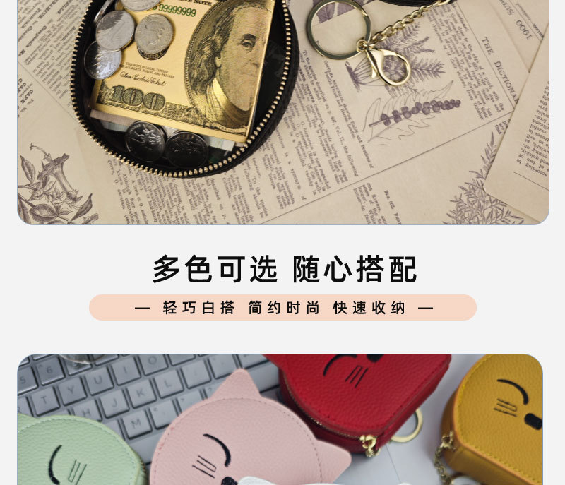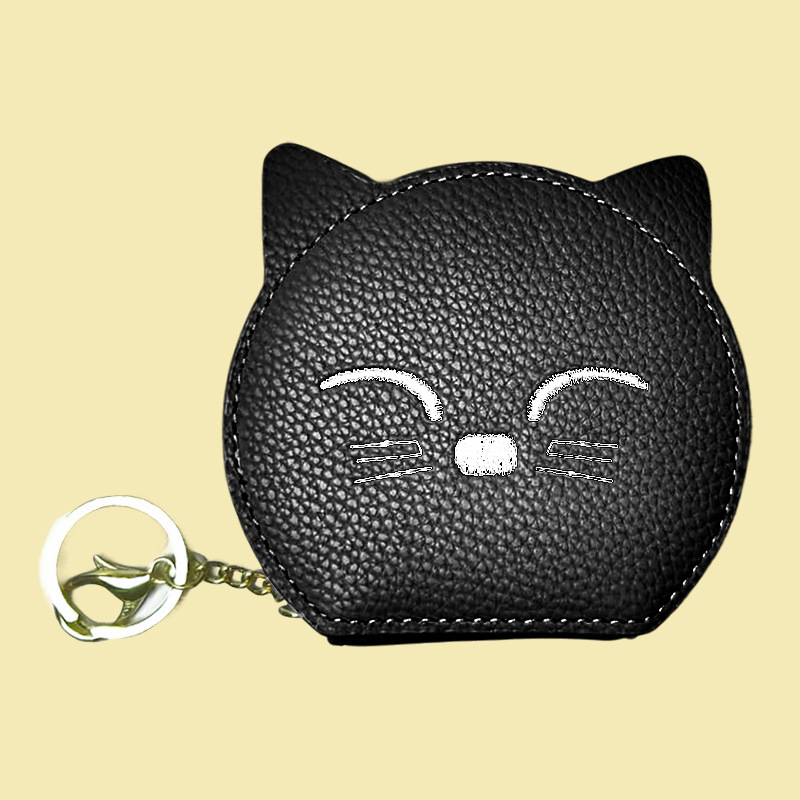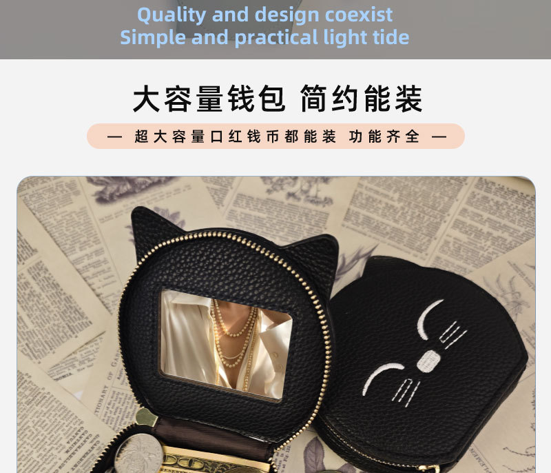 여성을위한 만화 고양이 동전 지갑 2025 새로운 동전 립스틱 거울 저장 메이크업 카드 가방 지퍼 미니