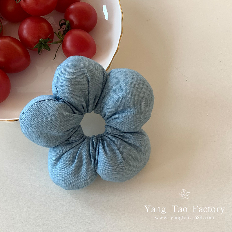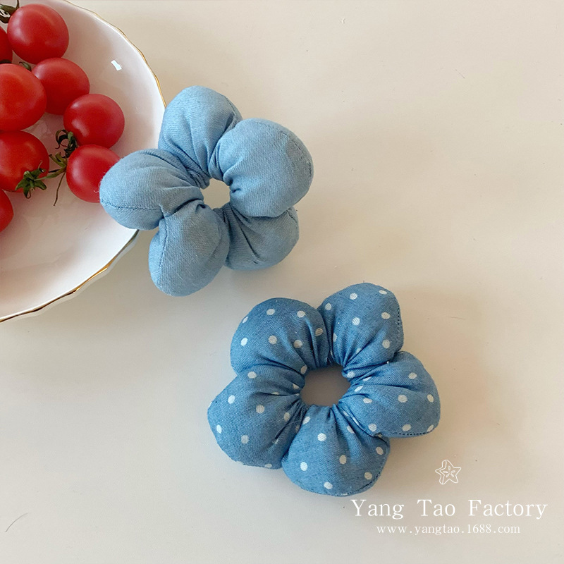 데님 웨이브 도트 플라워 헤어 링 스몰 사이즈 면 5 꽃잎 플라워 볼 헤드 포니 테일 헤어 텐더 헤어 액세서리 여성 헤어 액세서리스토어 가기