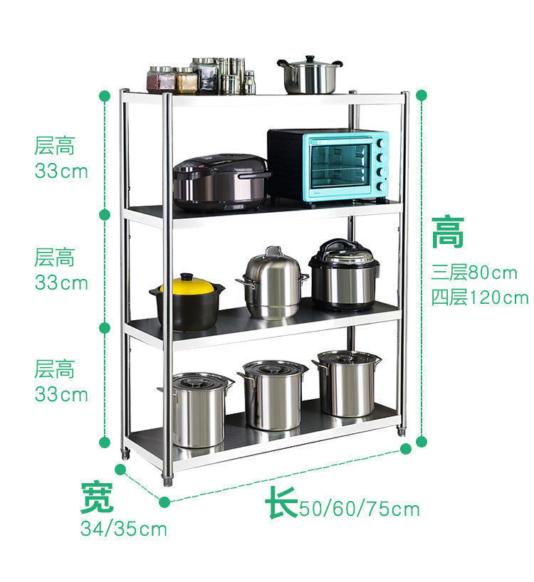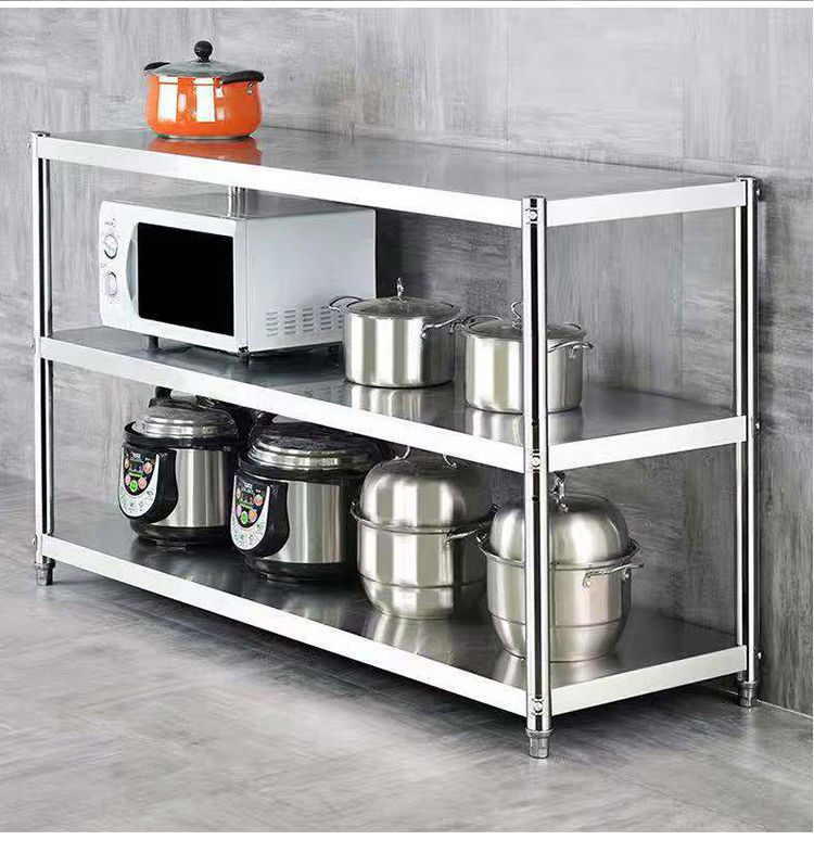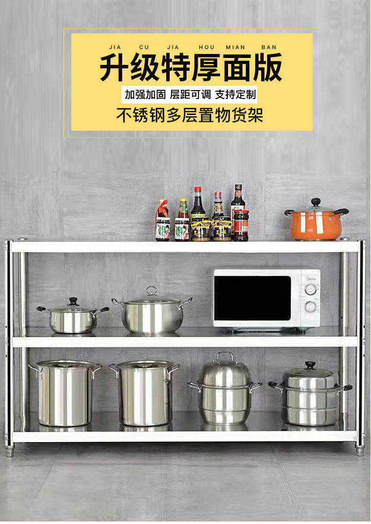 두꺼운 스테인레스 스틸 스토리지 랙 주방 바닥 스토리지 랙 전자 레인지 스토리지 랙 멀티 레이어 캐비닛 조합