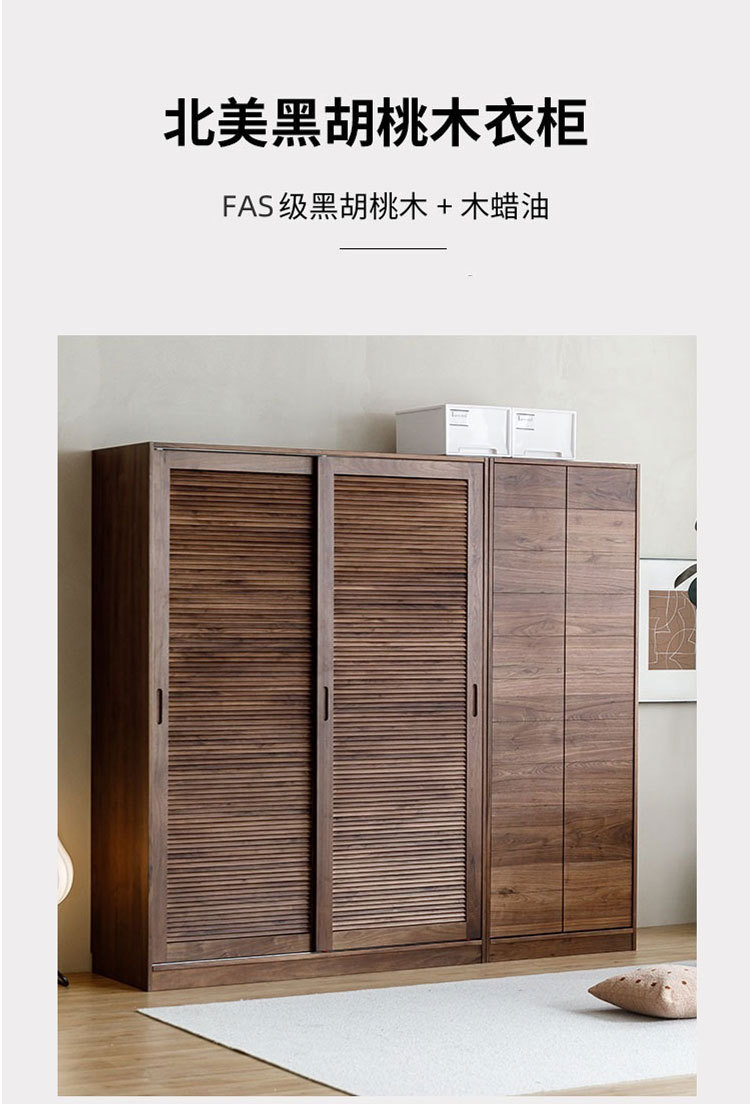 북미 블랙 호두 나무 옷장 셔터 도어 슬라이딩 슬라이딩 도어 바닥 캐비닛 북유럽 간단한 전체 단단한 나무 구름 조합 캐비닛