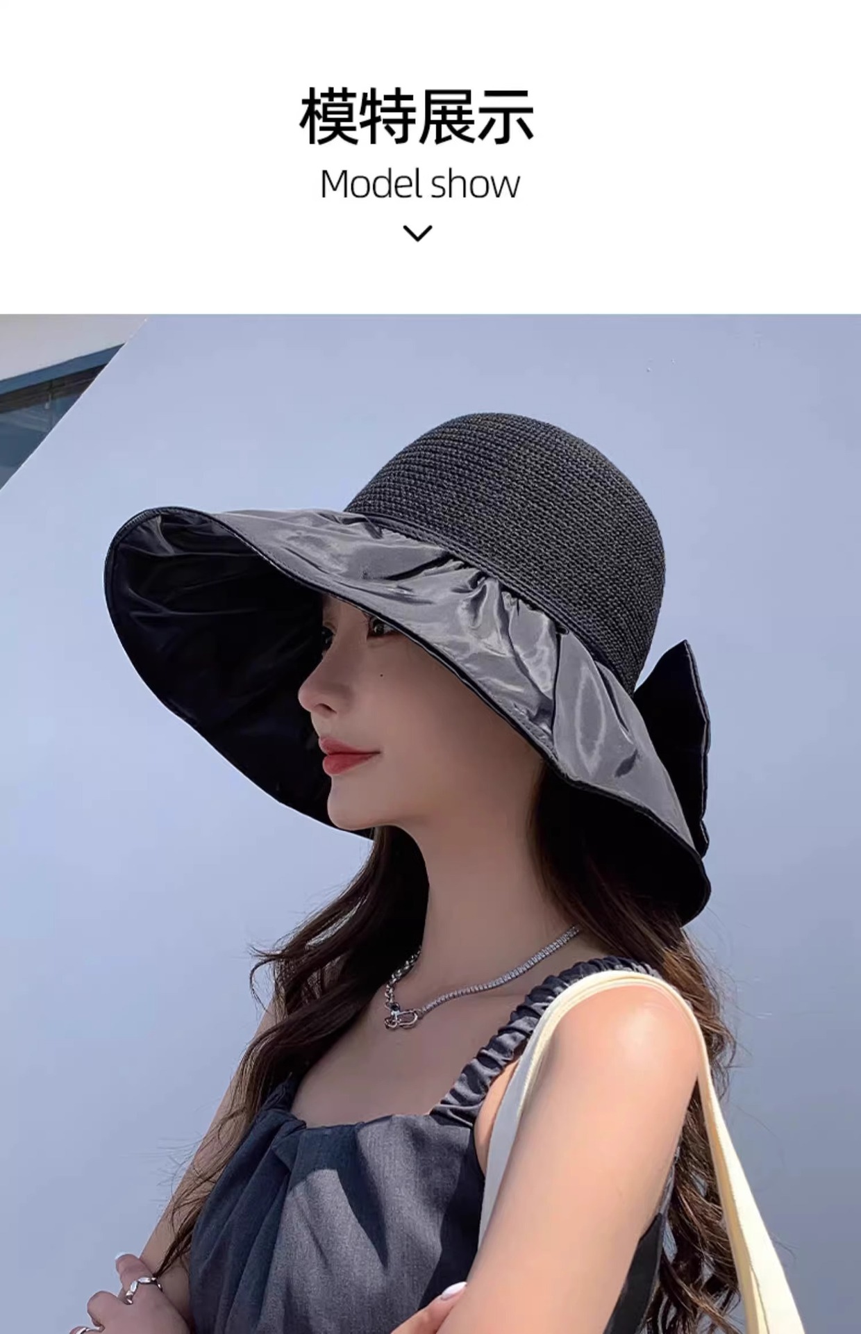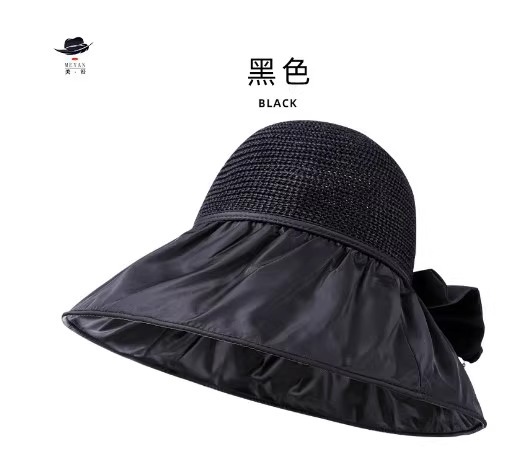 • 검은 밀짚 모자 태양 모자