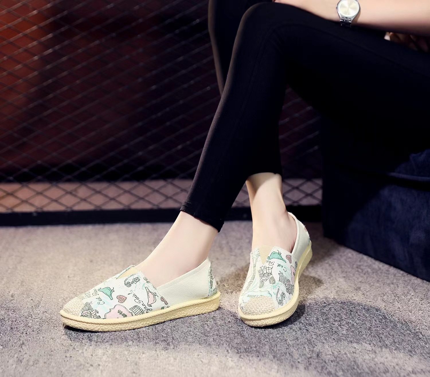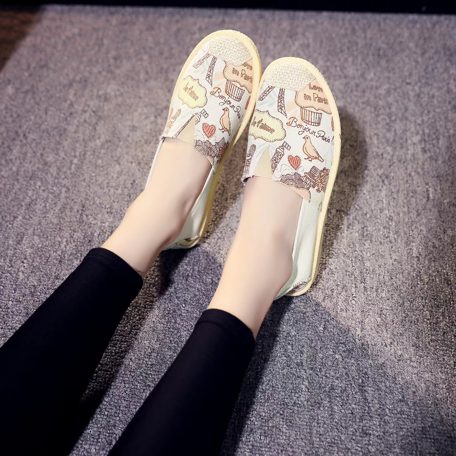 봄과 가을 여성 신발 패션 캐주얼 올매치 라이트급 소프트 솔 편안한 통기성 천 탑 슬립 온 여성용 플랫 천 신발스토어 가기
