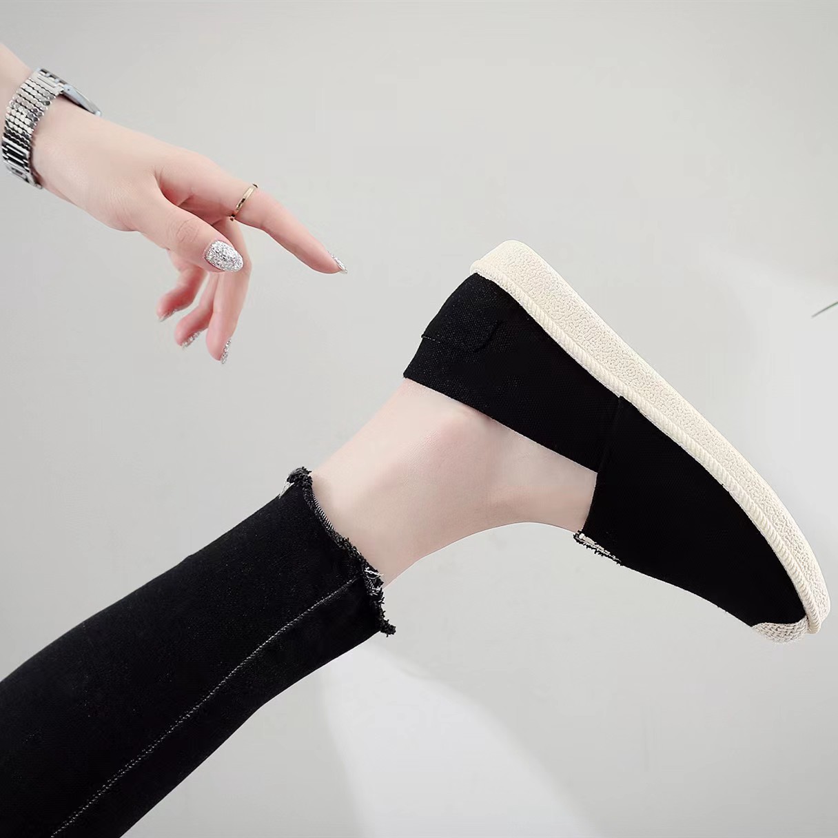 봄과 가을 여성 신발 패션 캐주얼 올매치 라이트급 소프트 솔 편안한 통기성 천 탑 슬립 온 여성용 플랫 천 신발