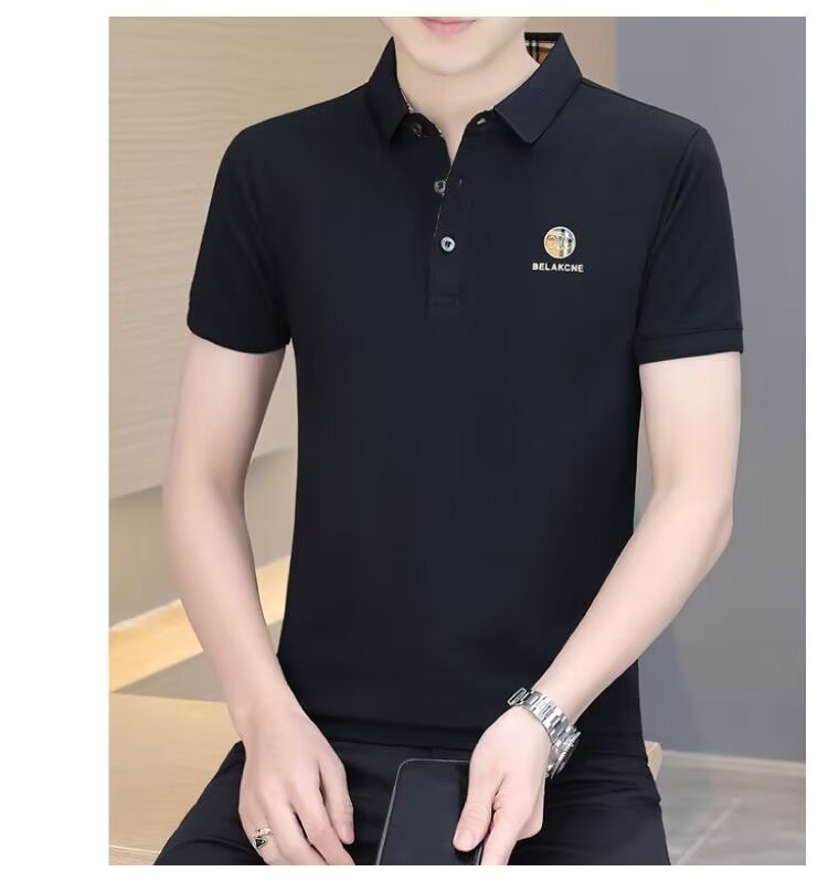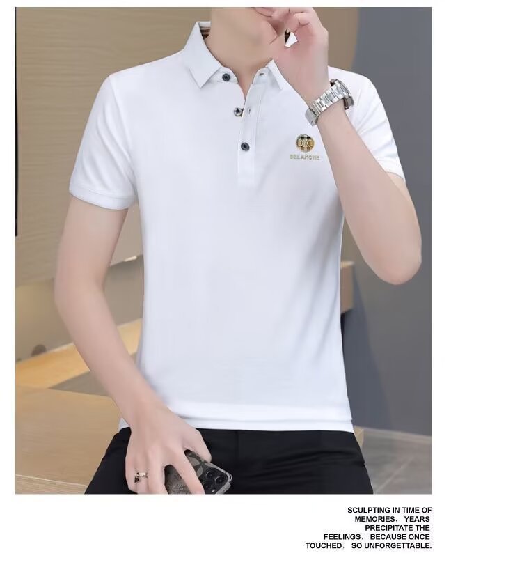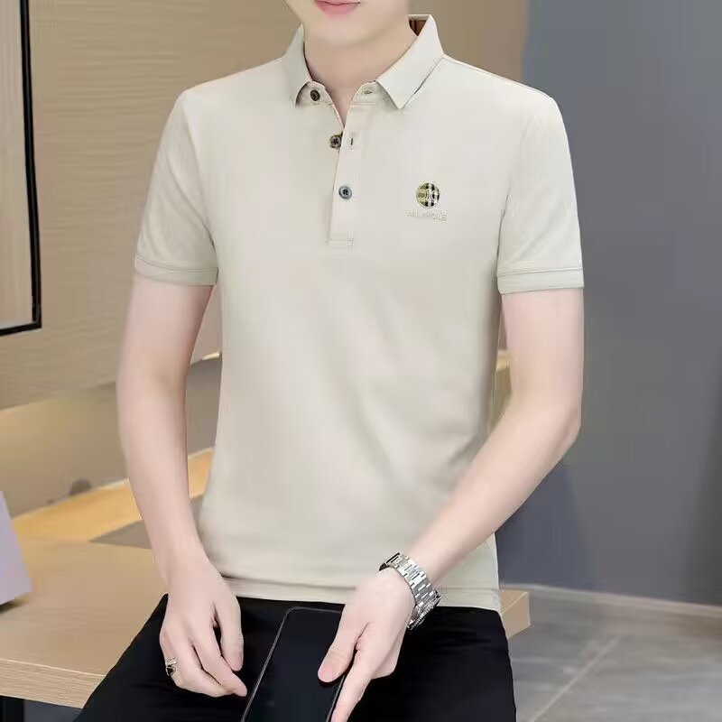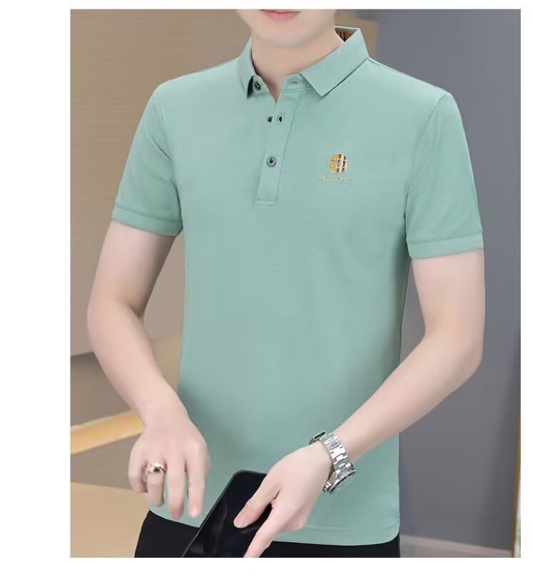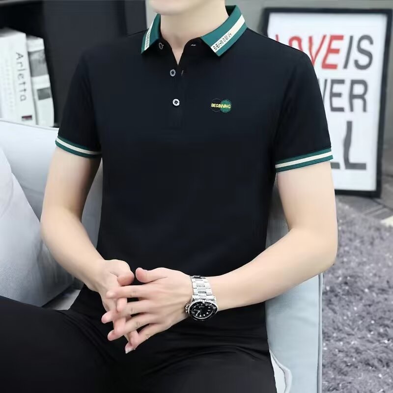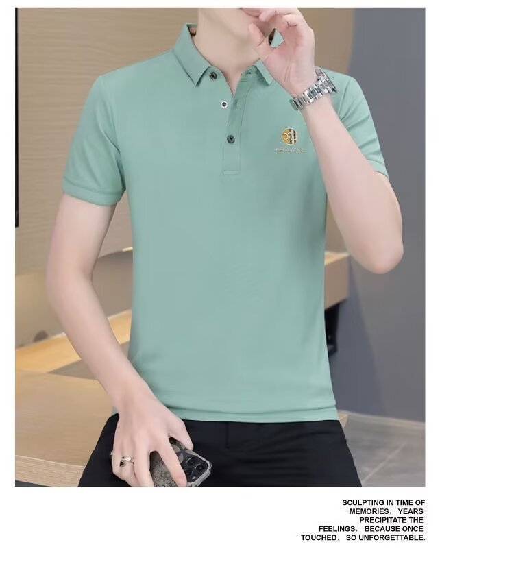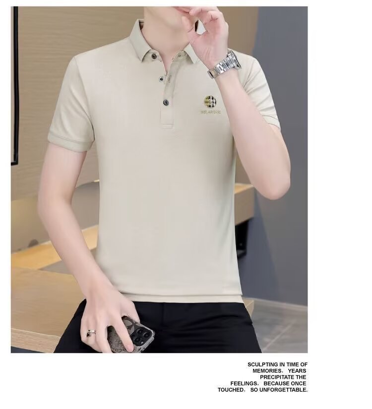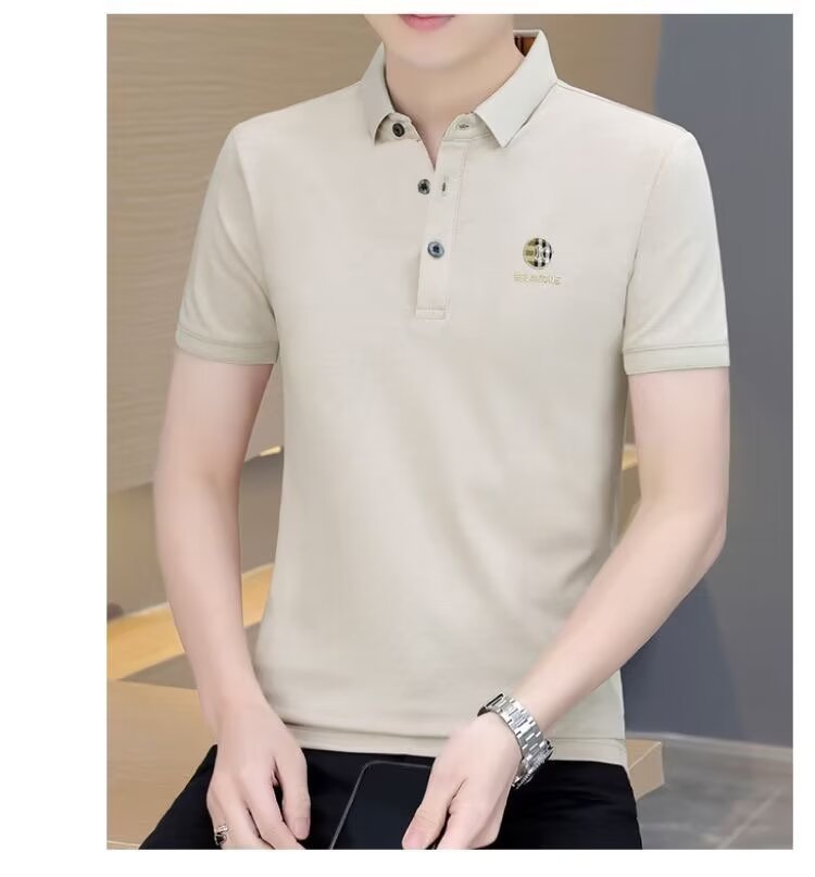 남자 반팔 티셔츠 옷깃 하프 소매 2025 칼라 남성 버튼 사업 남성 티셔츠 반소매 남성 도매스토어 가기