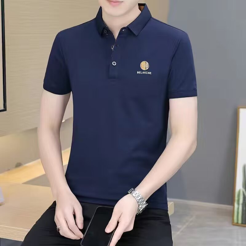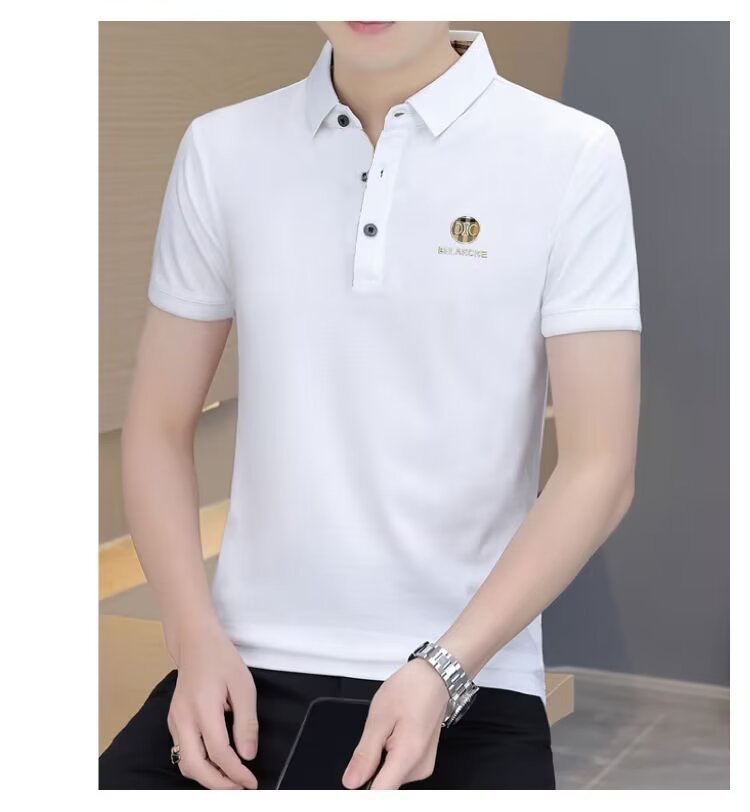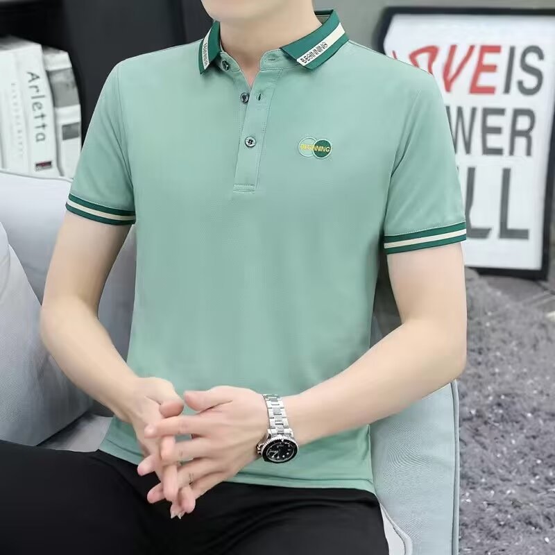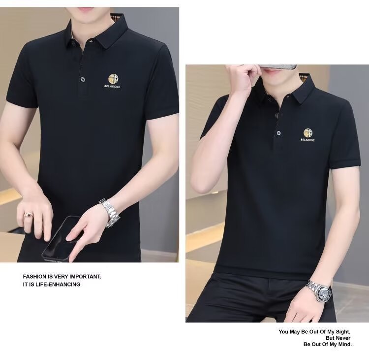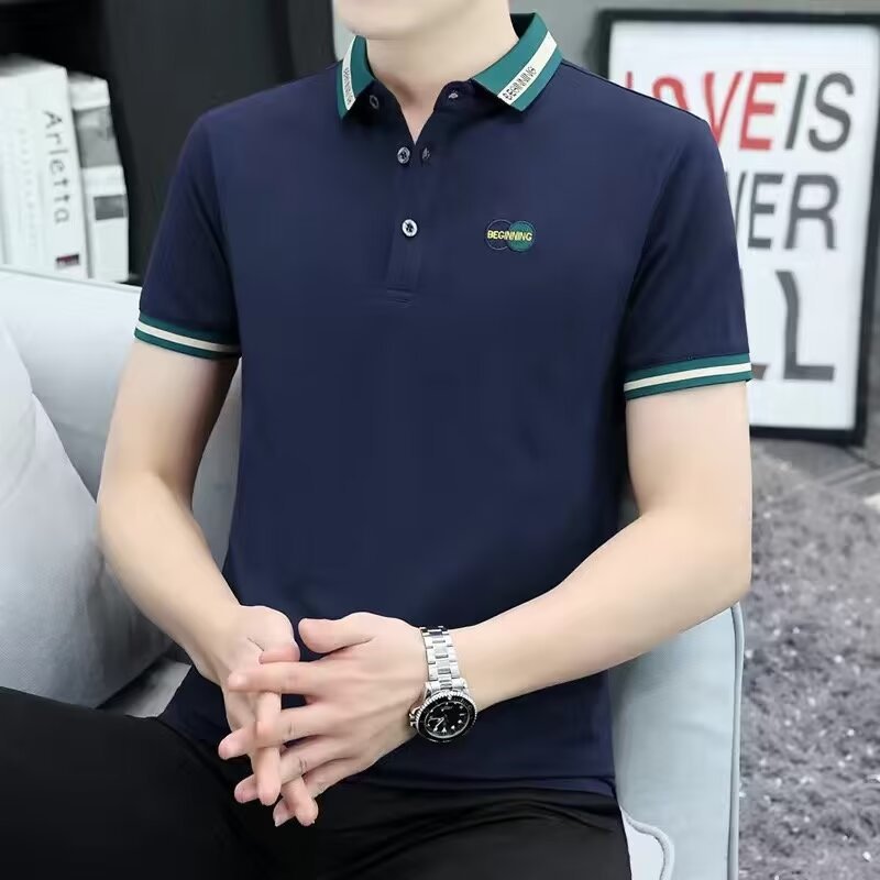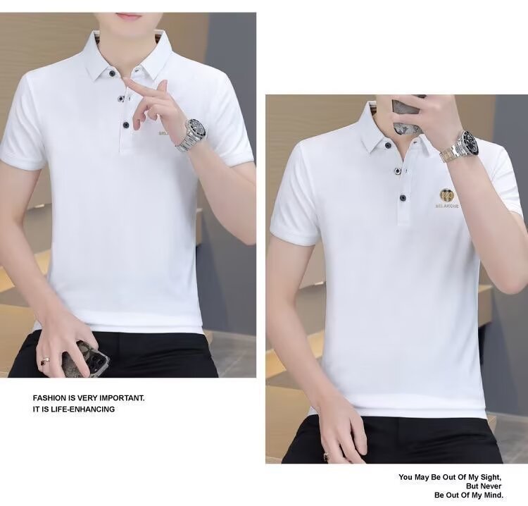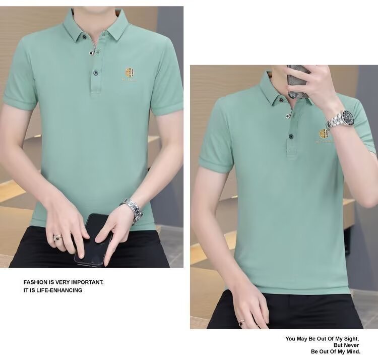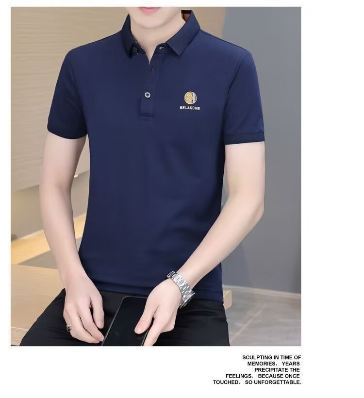 남자 반팔 티셔츠 옷깃 하프 소매 2025 칼라 남성 버튼 사업 남성 티셔츠 반소매 남성 도매스토어 가기