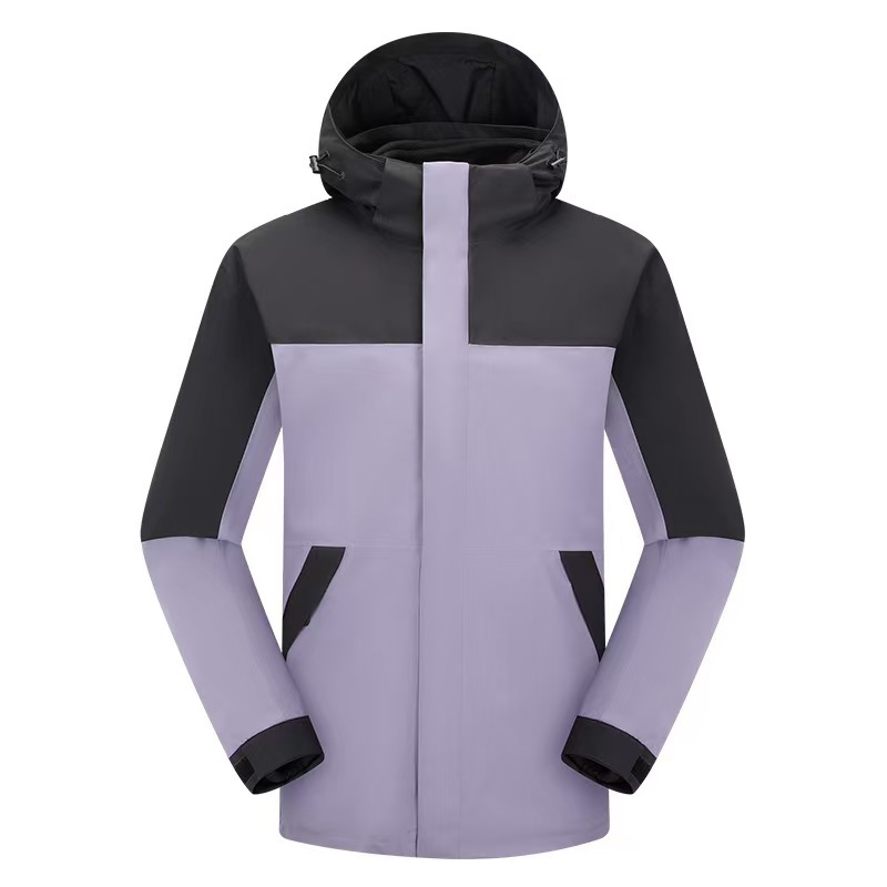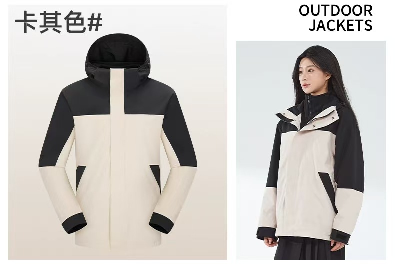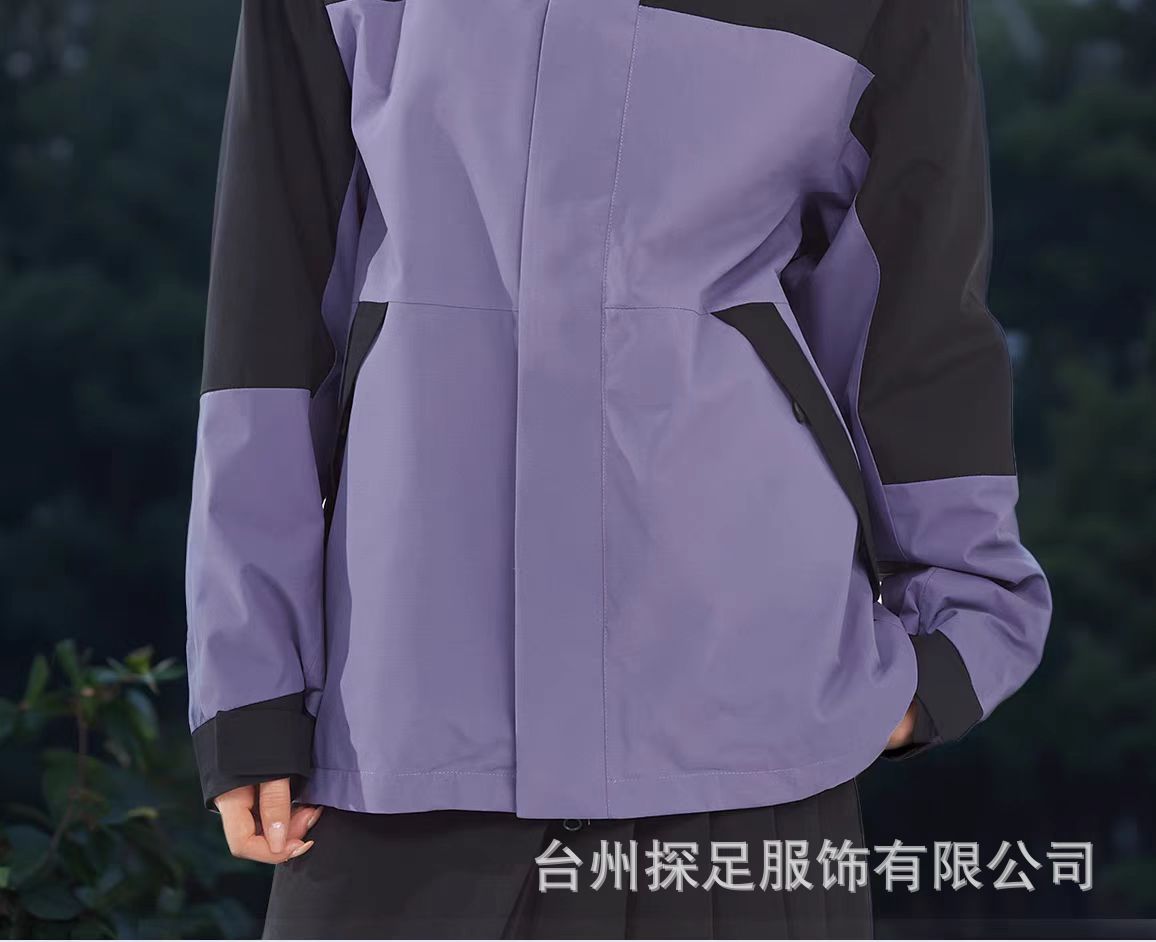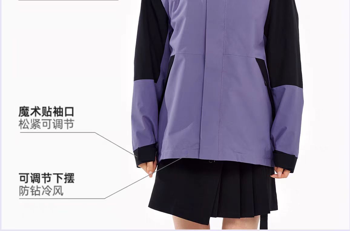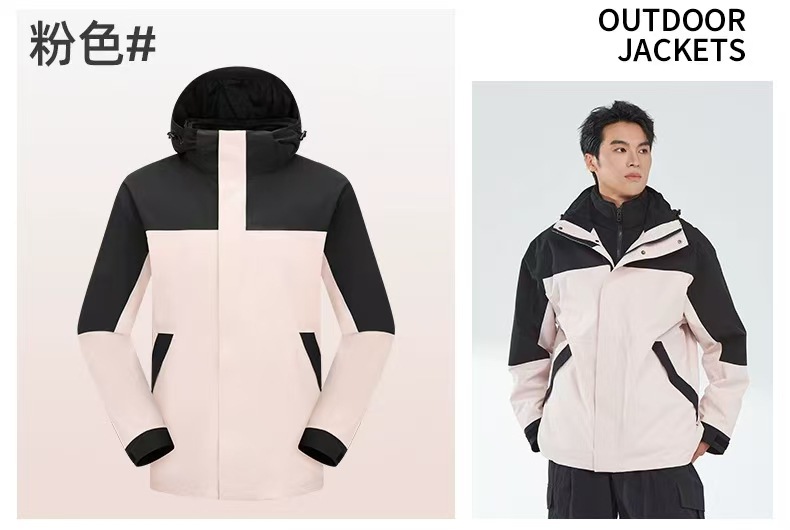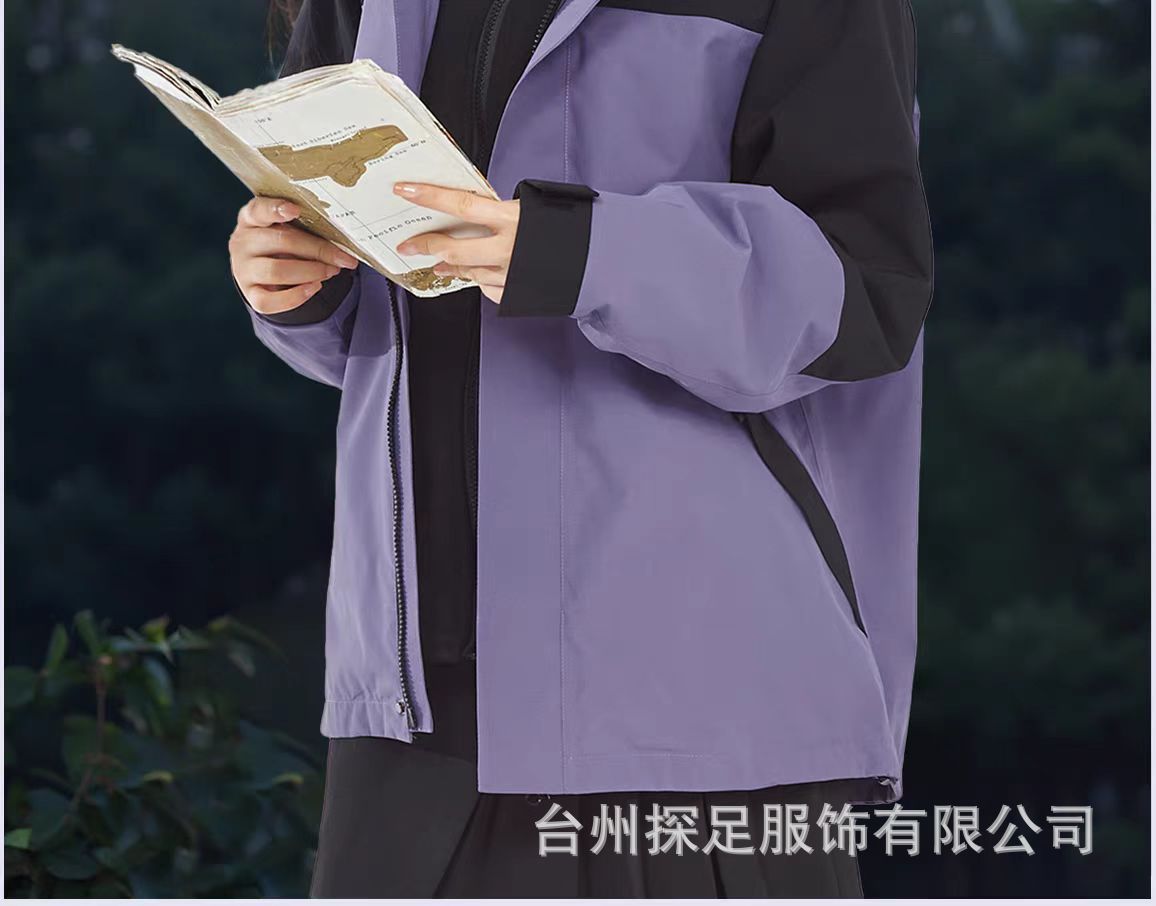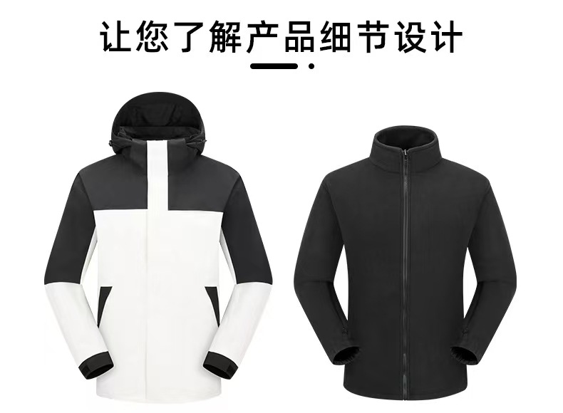 새로운 고무 프레스 재킷 3 대 1 탈착식 2 피스 방수 방풍 남성 및 여성 등산 세트 로고를 인쇄 할 수 있습니다.스토어 가기
