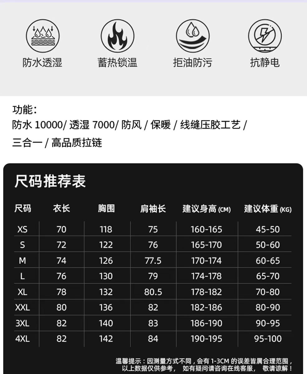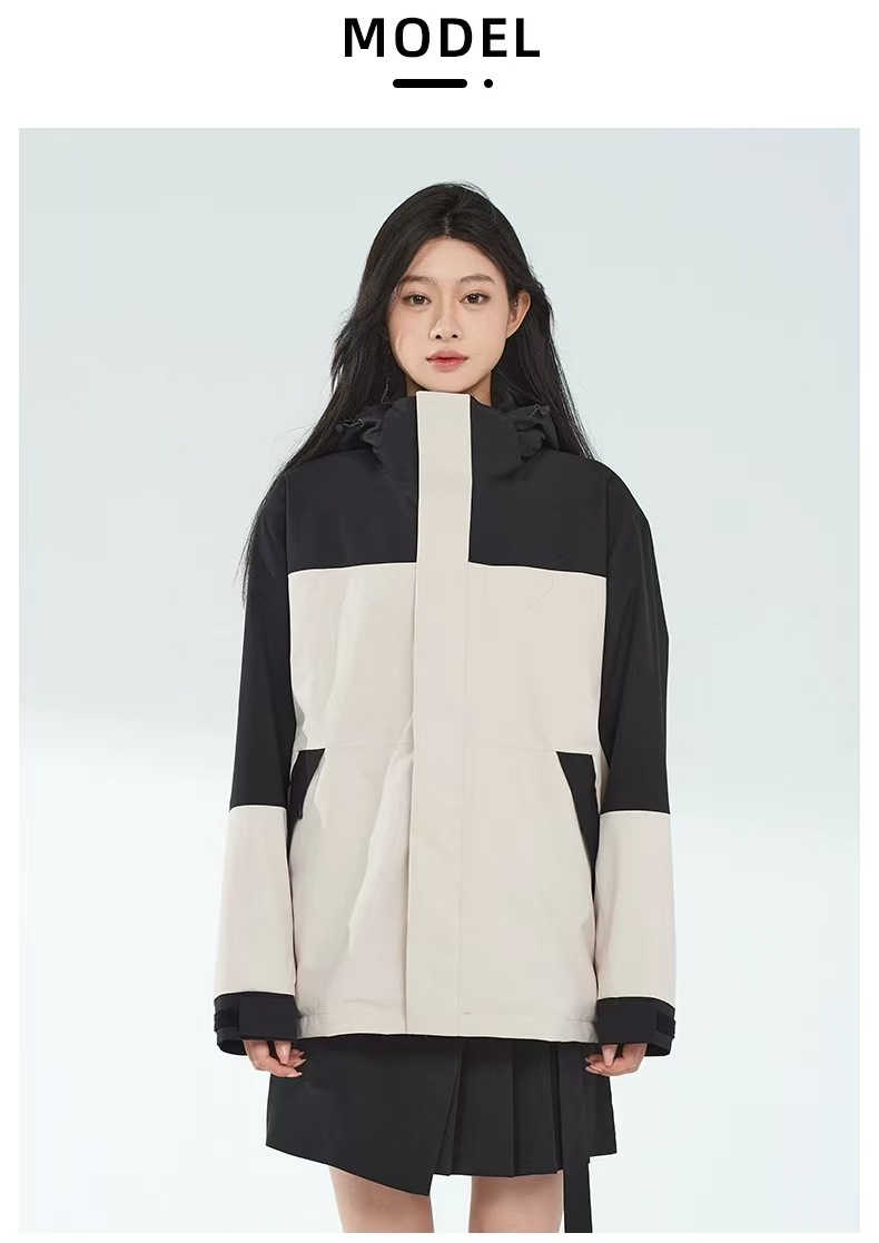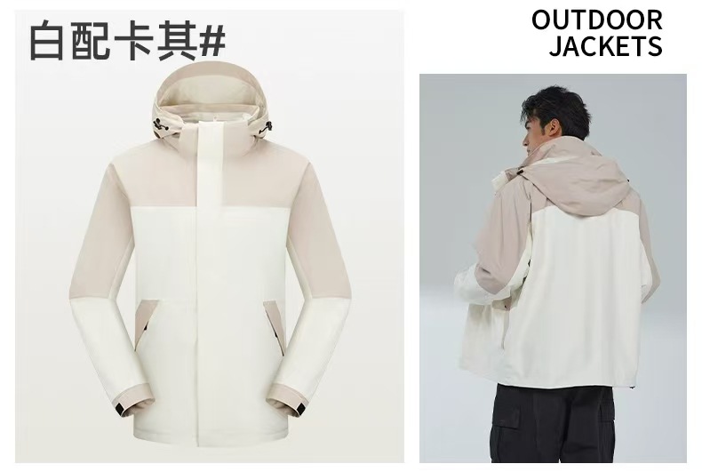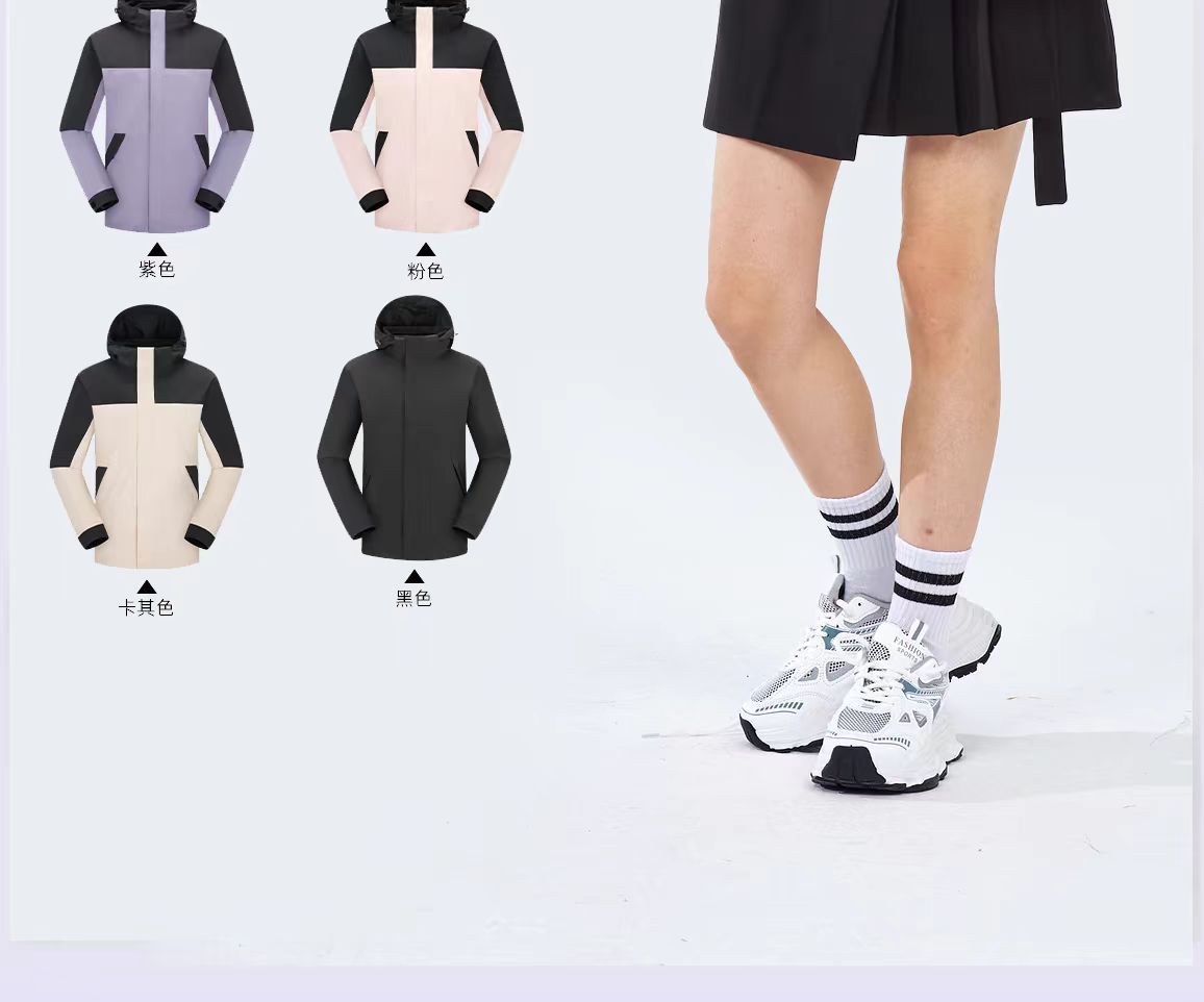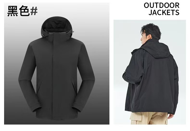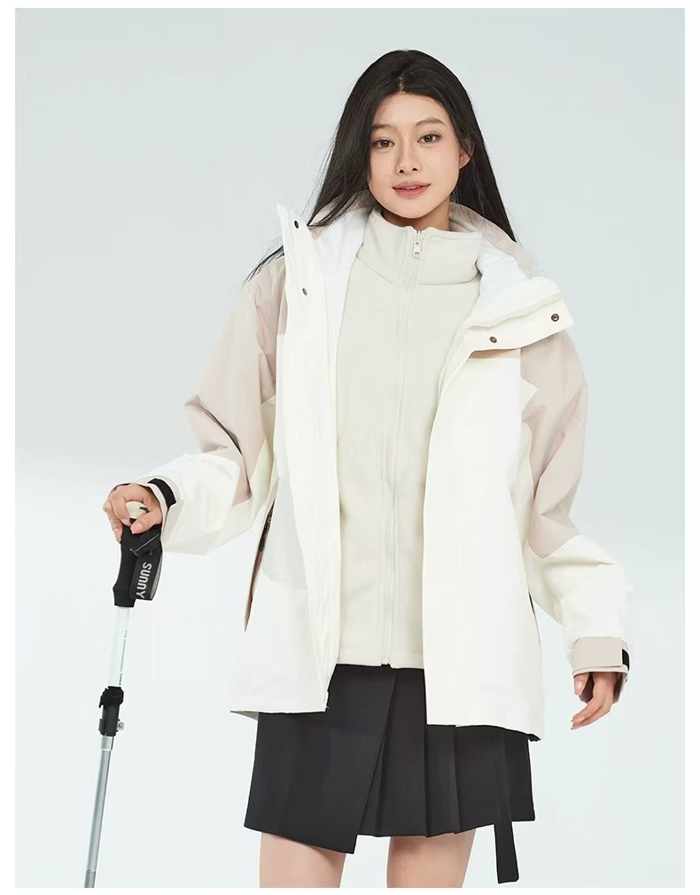 새로운 고무 프레스 재킷 3 대 1 탈착식 2 피스 방수 방풍 남성 및 여성 등산 세트 로고를 인쇄 할 수 있습니다.스토어 가기