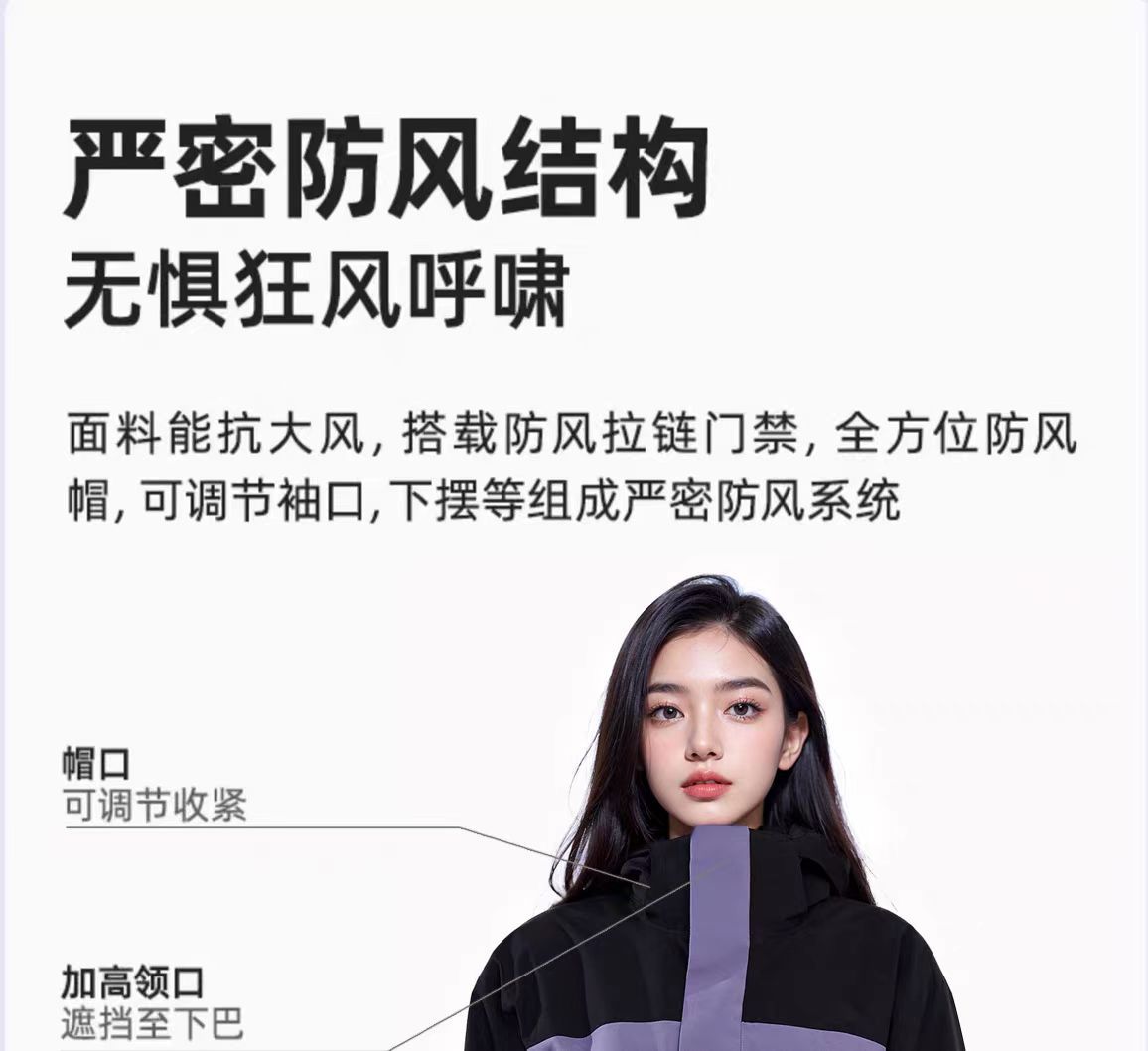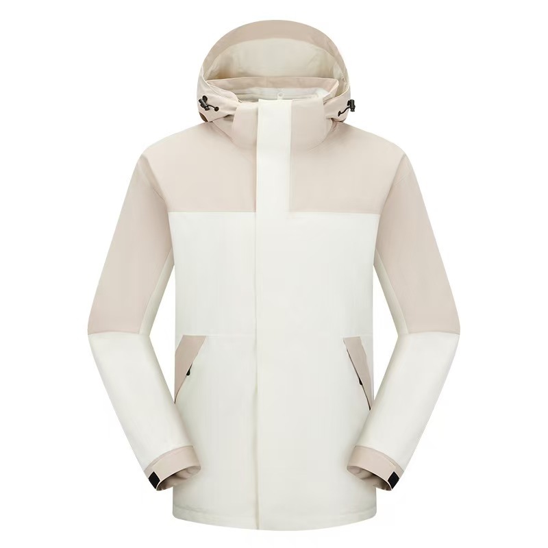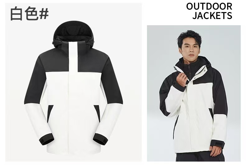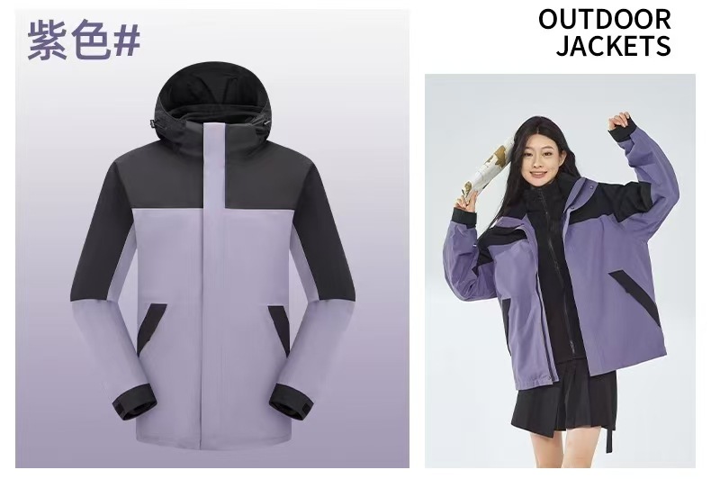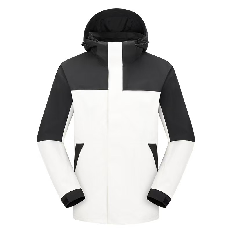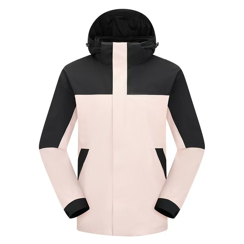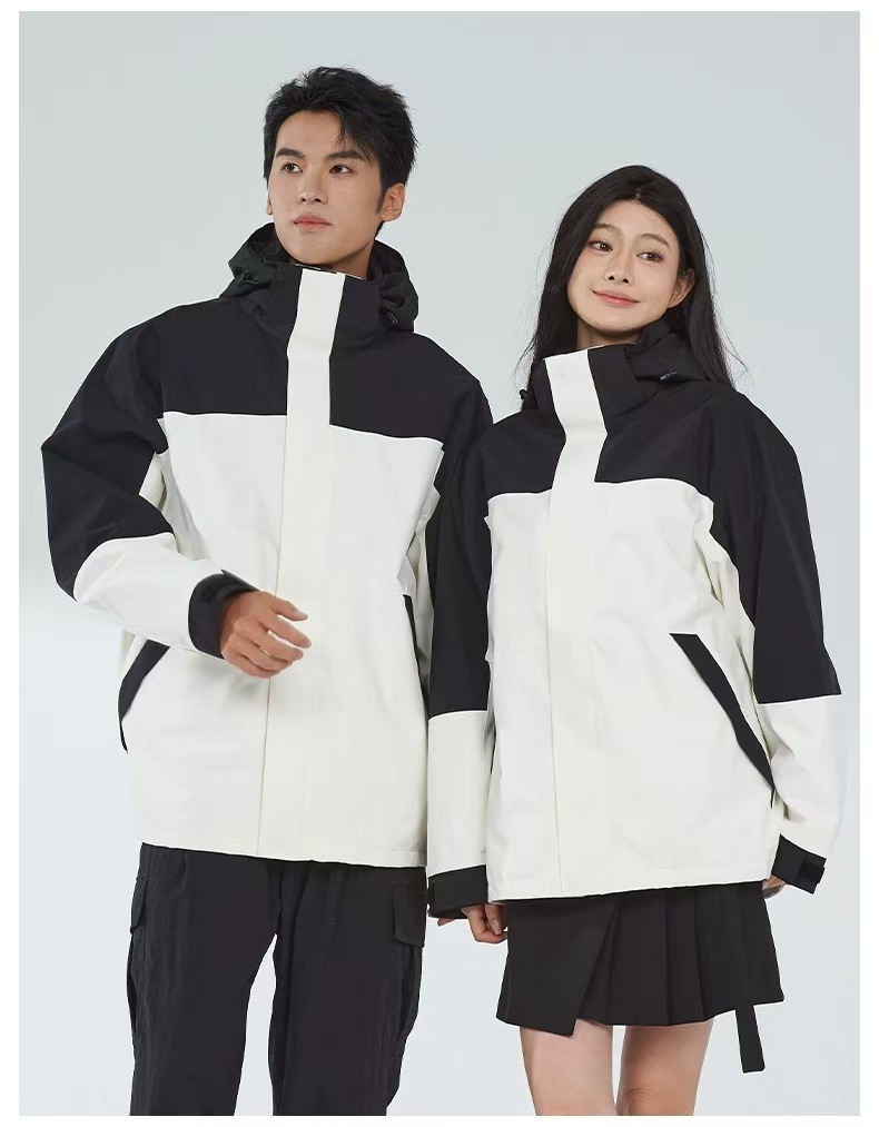 새로운 고무 프레스 재킷 3 대 1 탈착식 2 피스 방수 방풍 남성 및 여성 등산 세트 로고를 인쇄 할 수 있습니다.