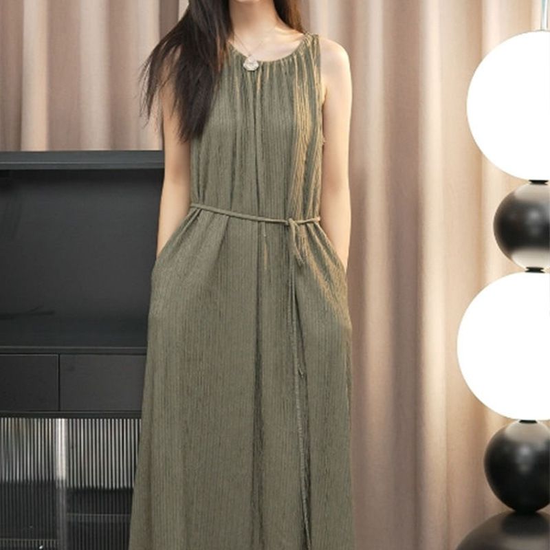 프랑스 스타일 우아한 2025 조끼 스타일 활기 넘치는 패션 원피스 여름 새로운 긴 원피스 민소매