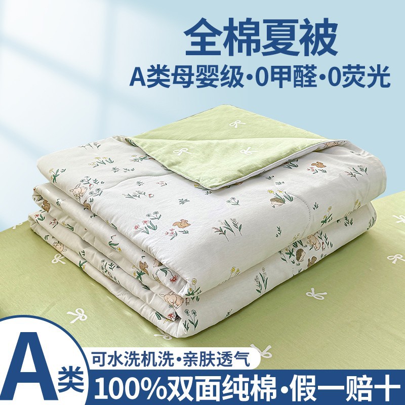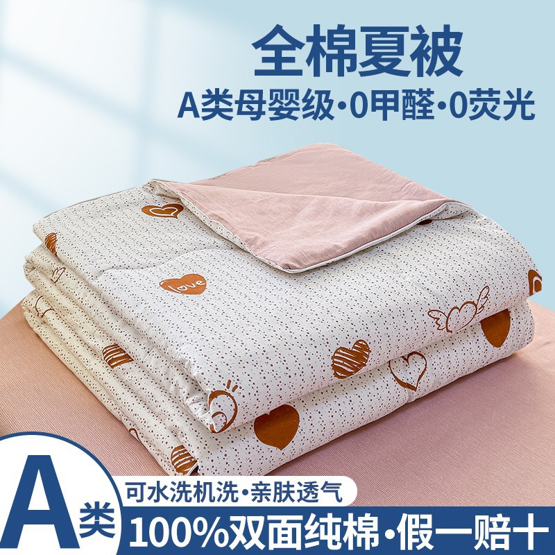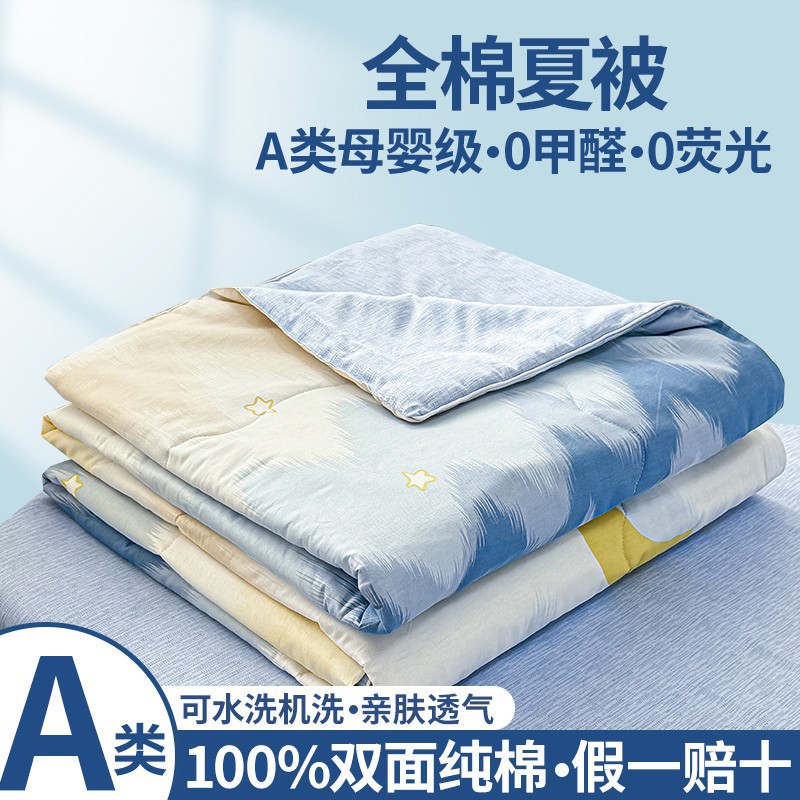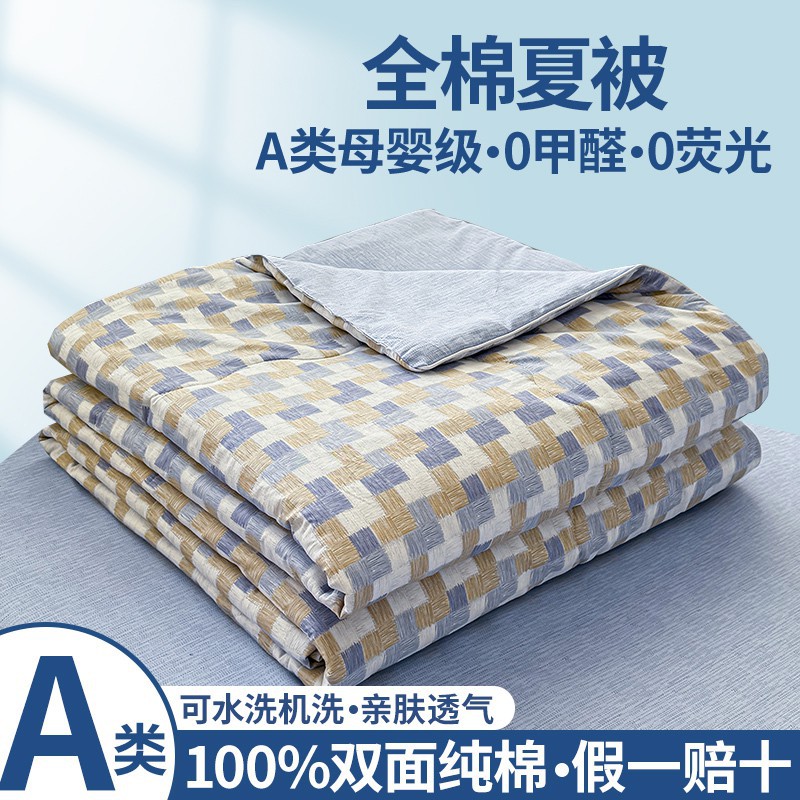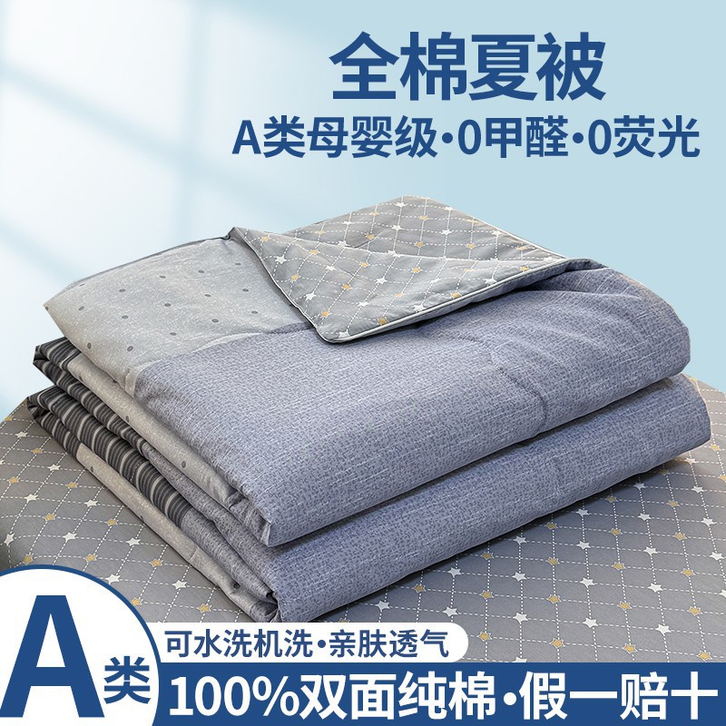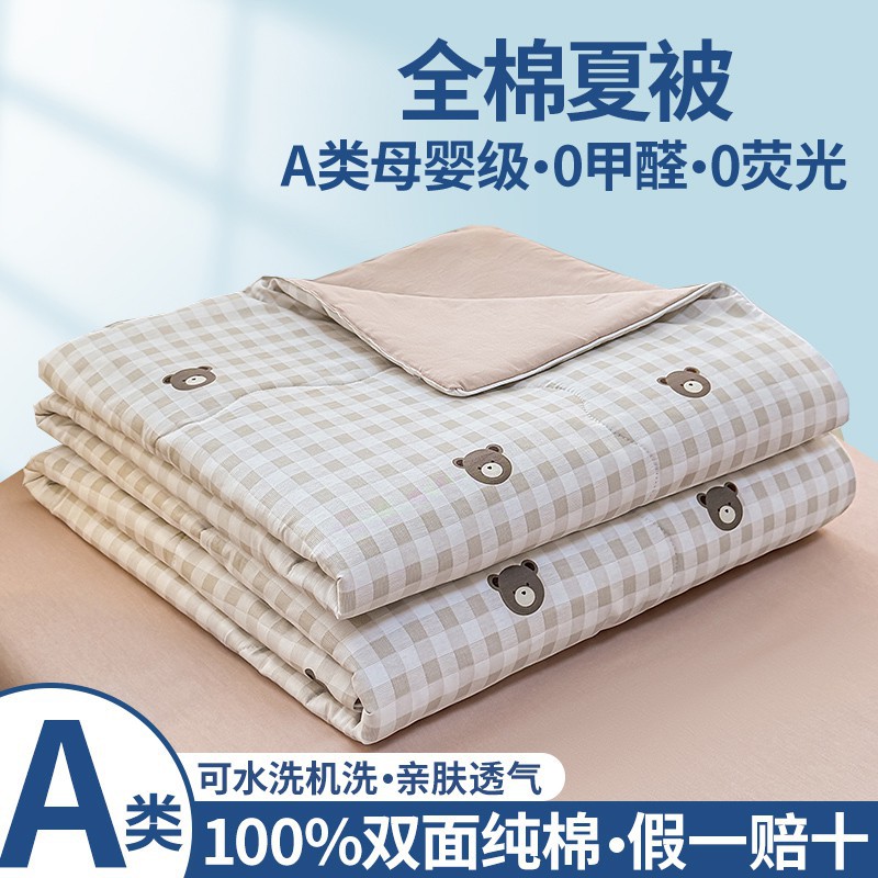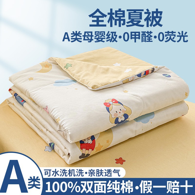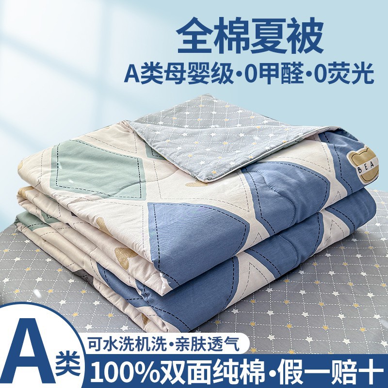 면 클래스 A 에어컨 여름 쿨 이불 순수 코튼 얇은 이불 기계 세탁 가능한 봄과 여름 어린이 여름 시원한 이불 선물 도매 기숙사스토어 가기