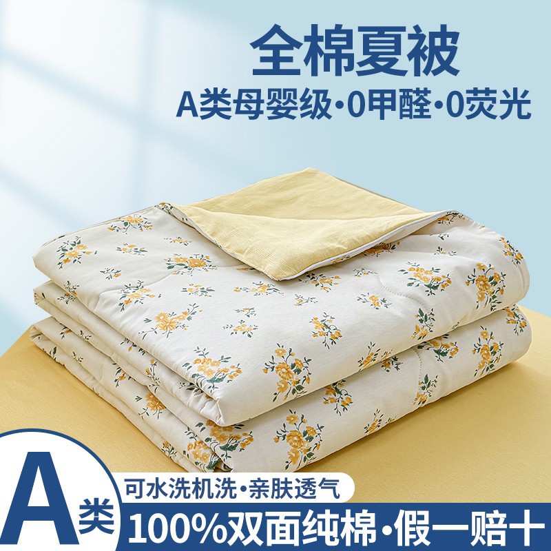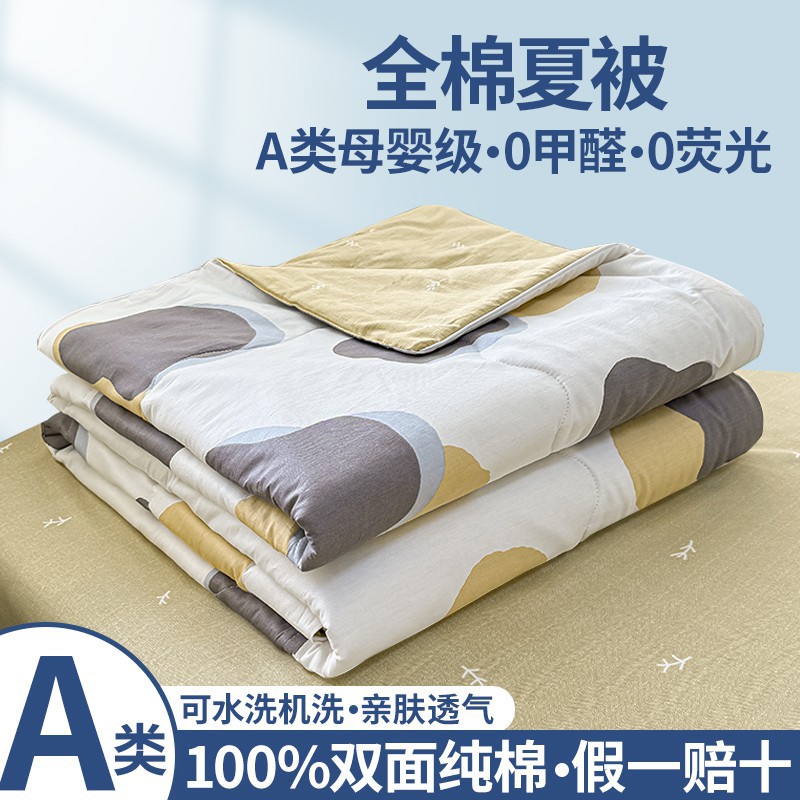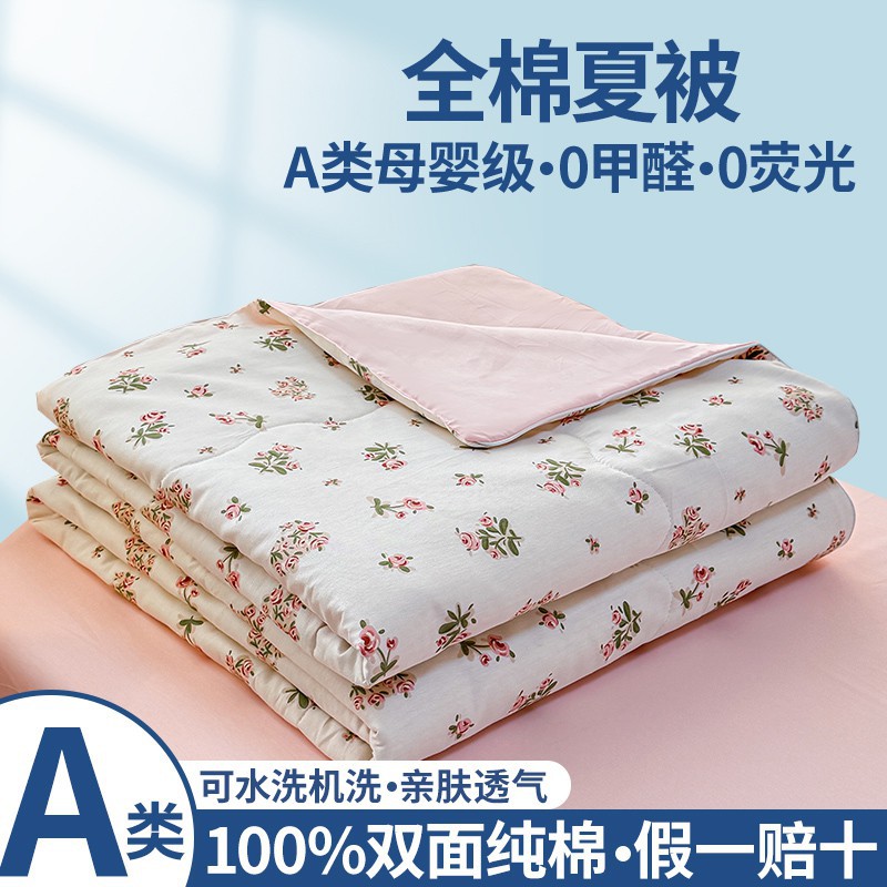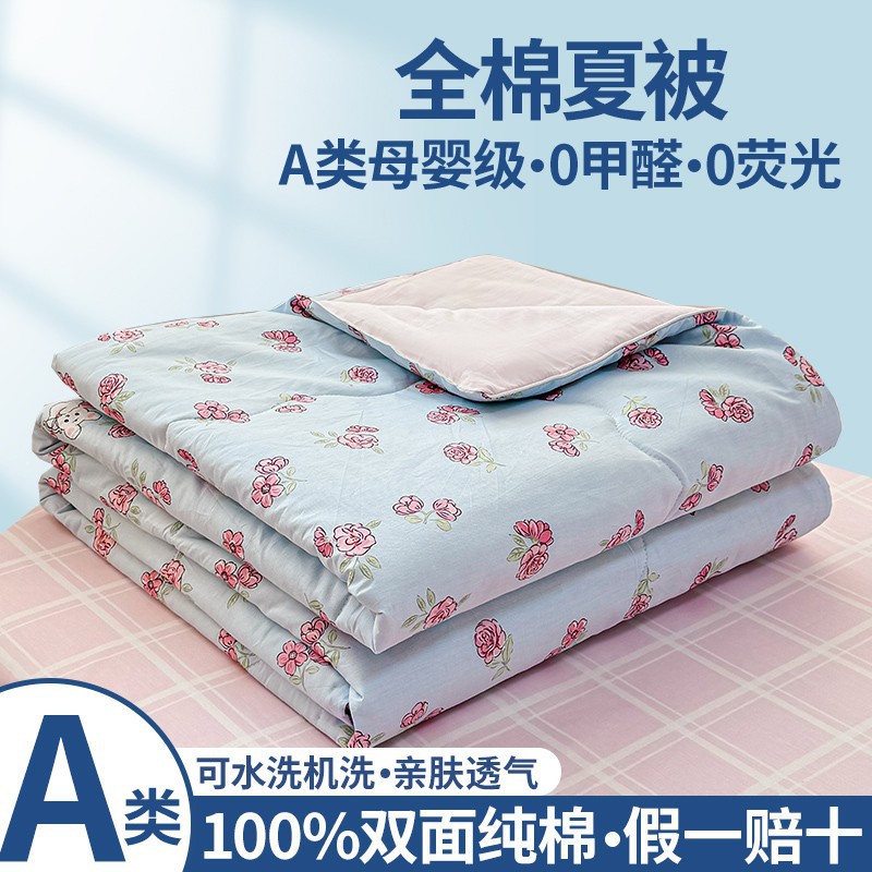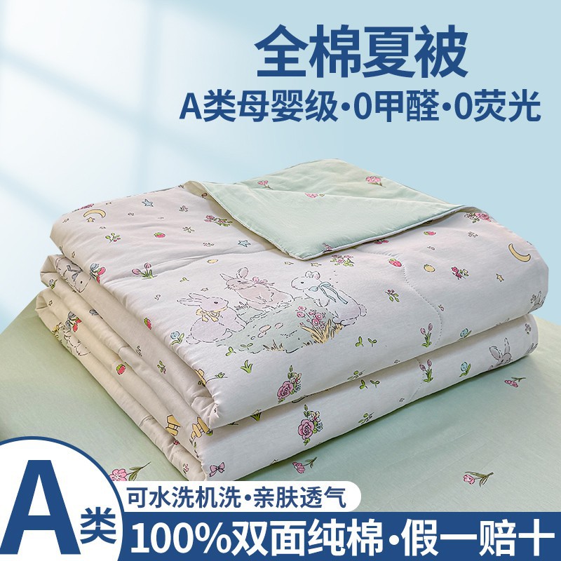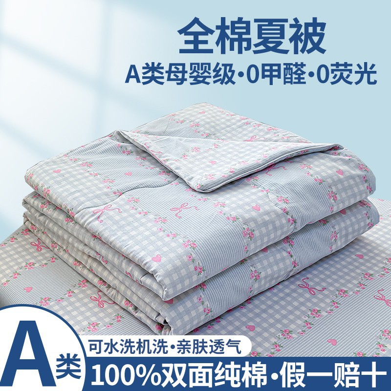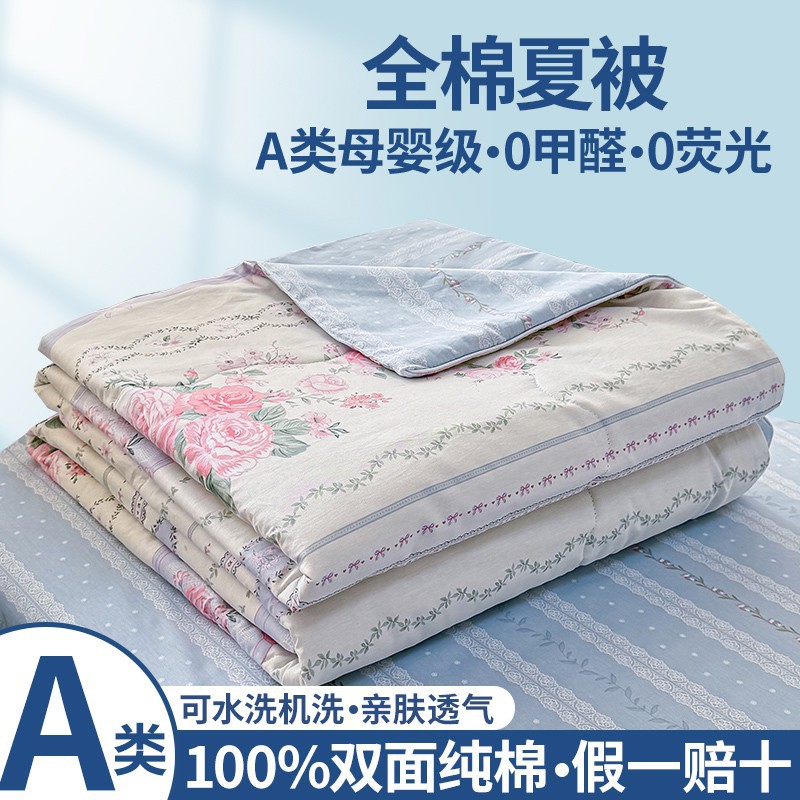 면 클래스 A 에어컨 여름 쿨 이불 순수 코튼 얇은 이불 기계 세탁 가능한 봄과 여름 어린이 여름 시원한 이불 선물 도매 기숙사스토어 가기