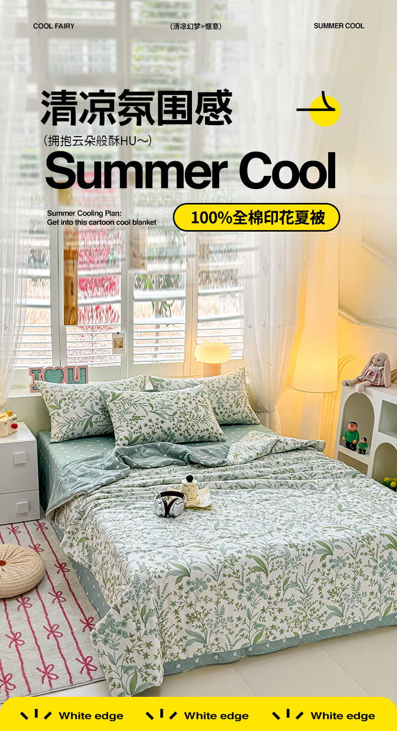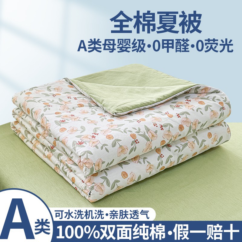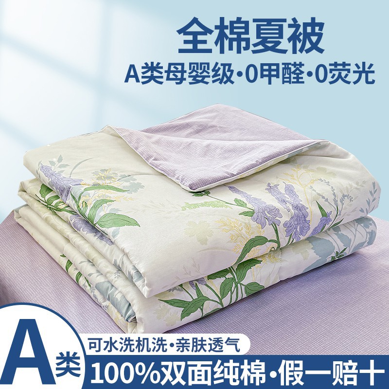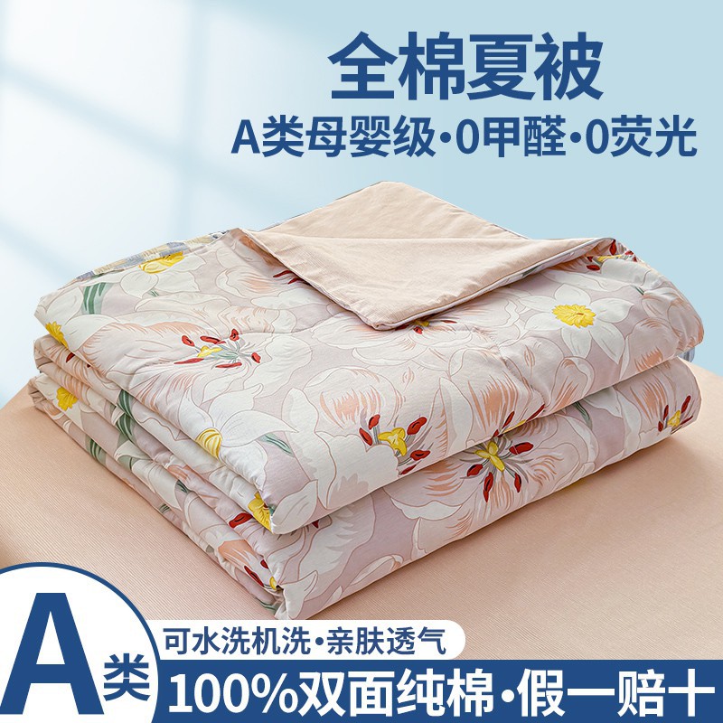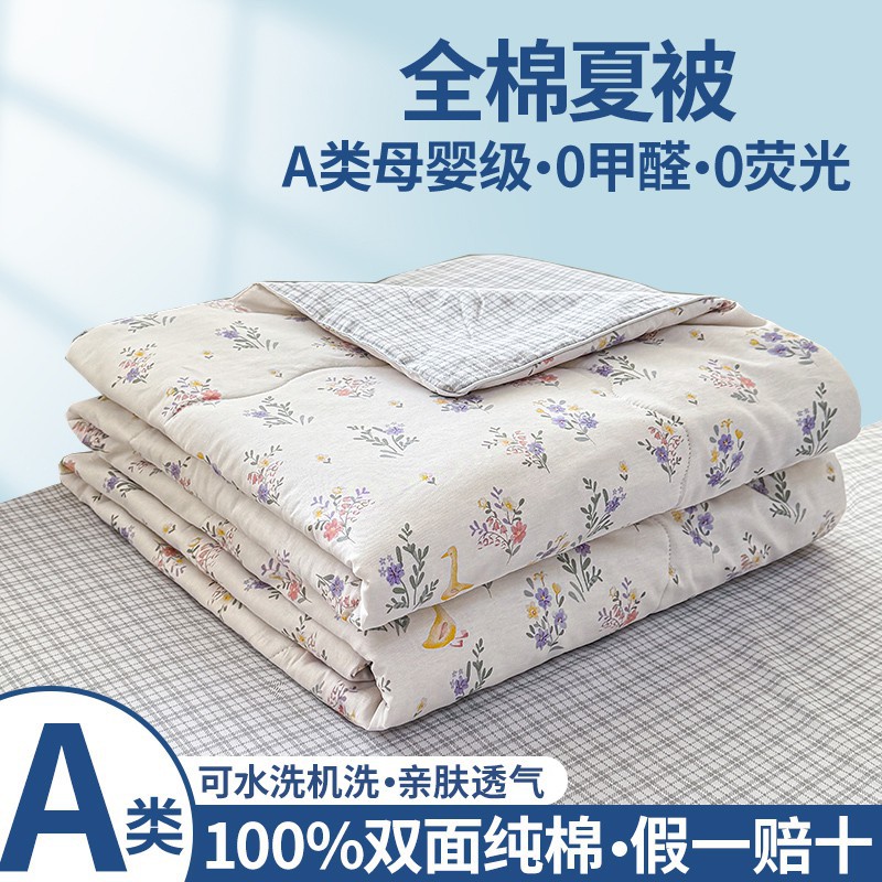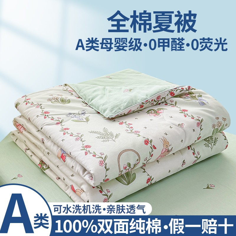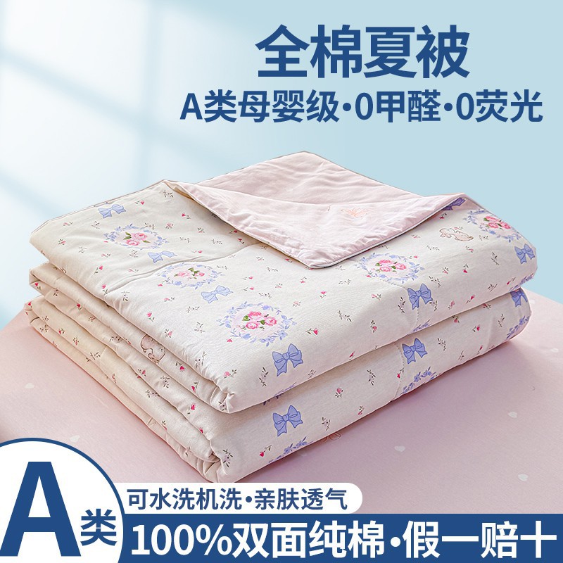 면 클래스 A 에어컨 여름 쿨 이불 순수 코튼 얇은 이불 기계 세탁 가능한 봄과 여름 어린이 여름 시원한 이불 선물 도매 기숙사스토어 가기