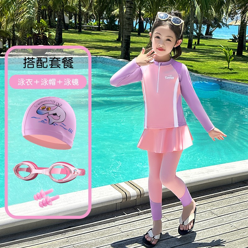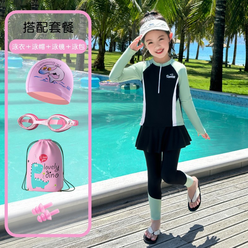 어린이 수영복 스플릿 3 피스 컬러 매칭 보수적 긴소매 긴팔 온천 수영복스토어 가기