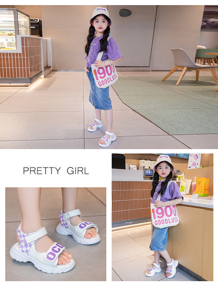 여자 샌들 여름 2025 새로운 소프트 하단 오픈 발가락 스포츠 어린이 비치 신발 대형 어린이 소녀 학생 신발스토어 가기