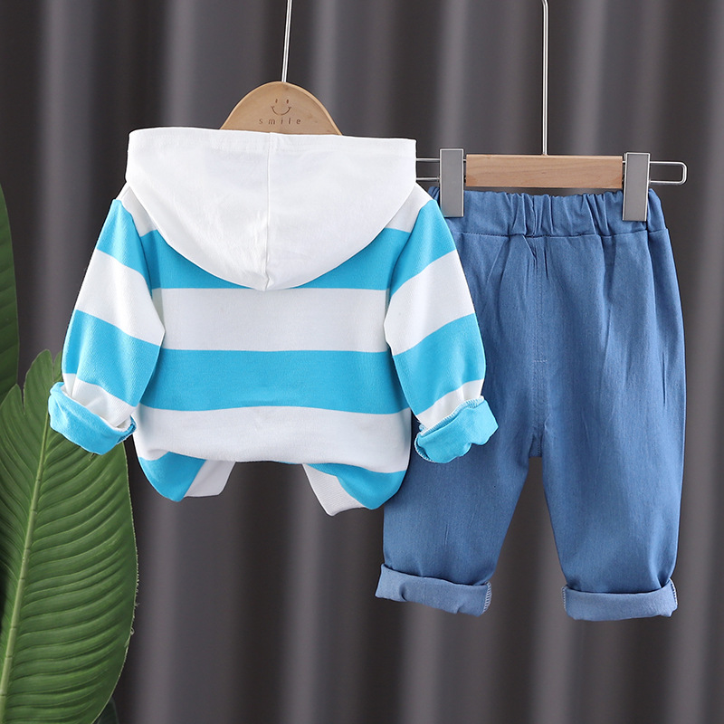 봄 세트 2025 봄과 가을 소년 어린이 새로운 어린이 서양식 스트라이프 파기 후드 긴 소매 투피스 세트
