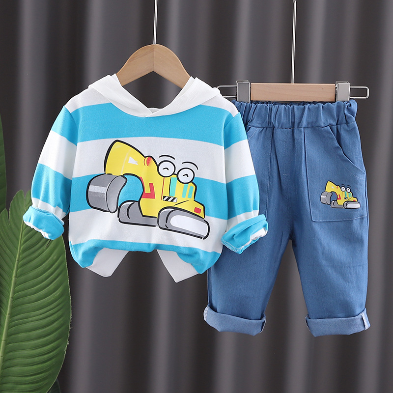 봄 세트 2025 봄과 가을 소년 어린이 새로운 어린이 서양식 스트라이프 파기 후드 긴 소매 투피스 세트스토어 가기